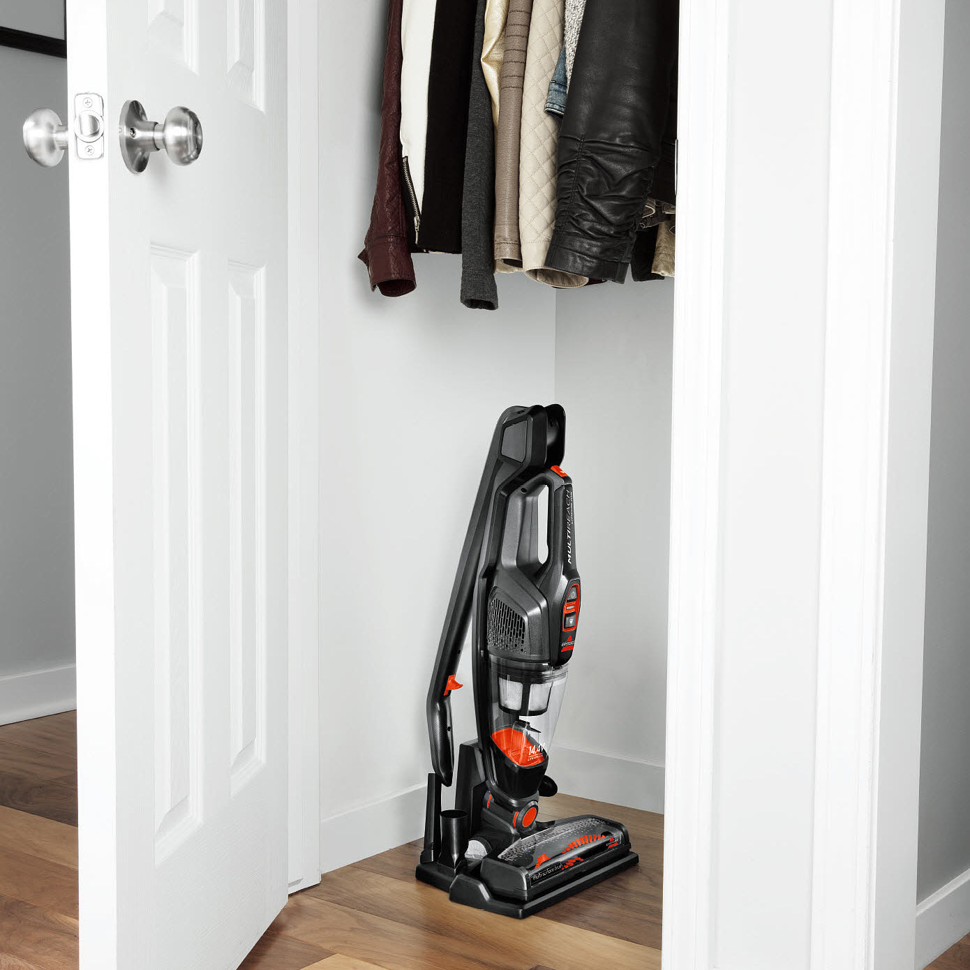 BISSELL MultiReach Essential steelstofzuiger en kruimeldief Deze draadloze steelstofzuiger gaat twintig minuten mee met een hoge zuigkracht. De steel buig je gemakkelijk zodat je zonder problemen onder de bank of salontafel zuigt. De zuigmond zwenkt zodat je lekker door de bocht gaat. Als er wat rommel op de bank, tafel of aanrecht ligt, haal je de kruimeldief er even uit. Die klik je daarna zo weer vast in de stofzuiger. Na gebruik vouw je de stofzuiger op voor compacte opslag in het oplaadstation. In het laadstation bewaar je ook alle opzetstukken.