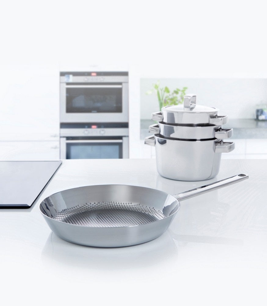 Doordat de pan uit drie lagen bestaat is deze vrij zwaar. Dit is extra fijn wanneer de pan stevig op het fornuis moet staan, wanneer je erin wilt mixen, roeren of pureren. De pannen zijn geschikt voor alle warmtebronnen inclusief inductie en de oven.