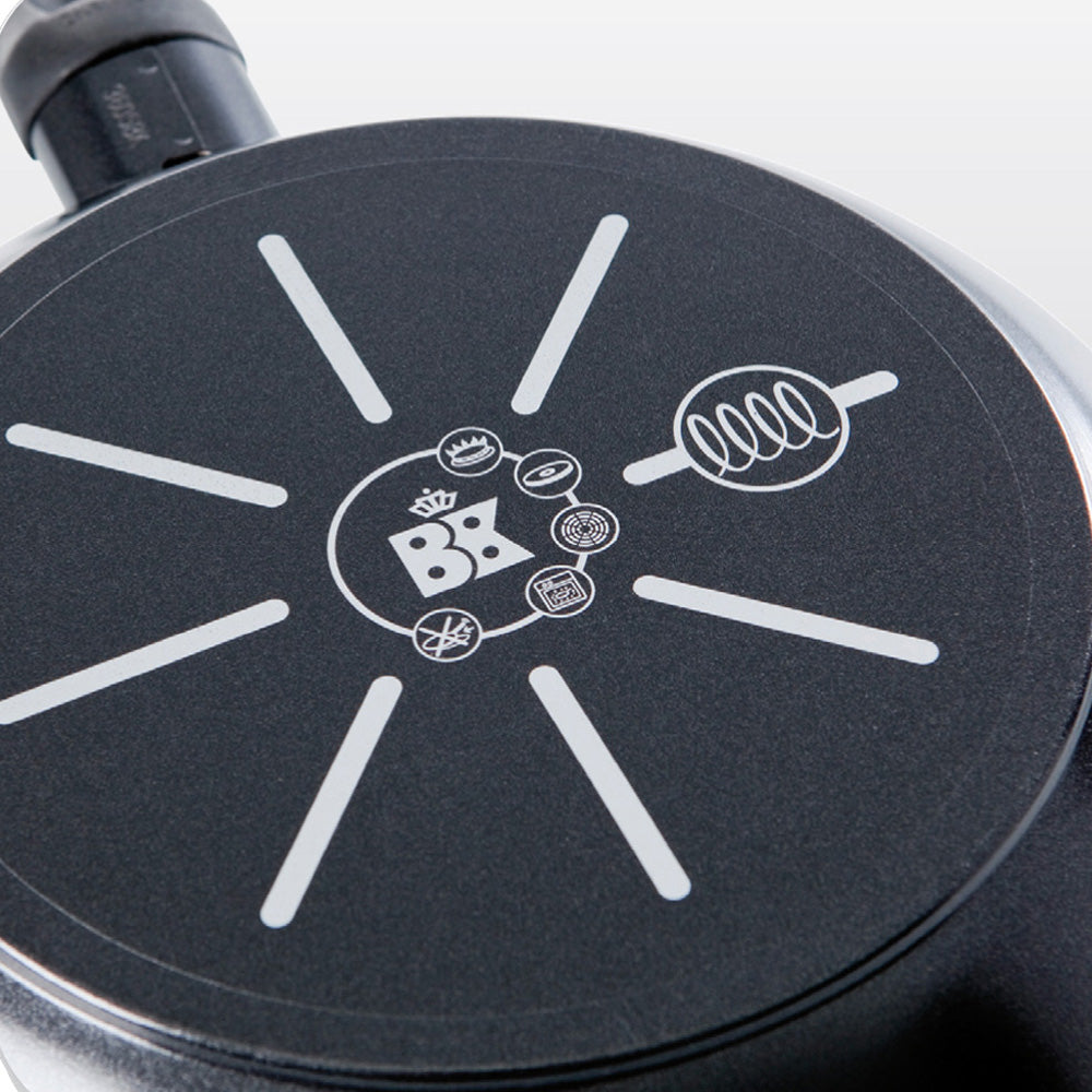 Speciaal voor inductie Deze pannen zijn speciaal ontworpen voor koken op inductie. Ze zijn uiteraard geschikt voor alle warmtebronnen, maar vanwege de speciale bodem zijn ze de eerste keuze van professionals die op inductie koken. De bodem van de BK Easy Induction serie pannen is voorzien van een magnetische laag en is wel 5,5 mm dik!