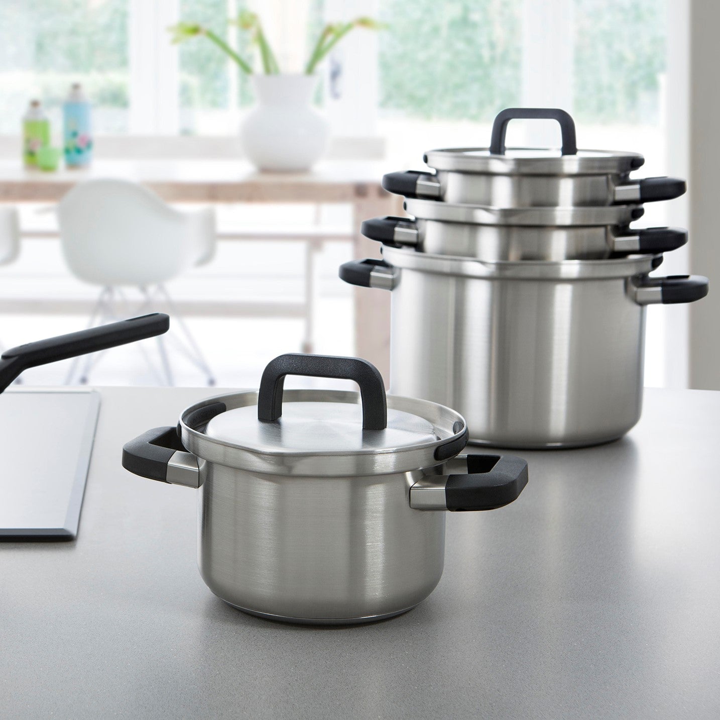 Hoogwaardig materiaal Met een body van hoogwaardig roestvrij staal en een ingekapselde sandwichbodem (een laag aluminium tussen twee lagen roestvrijstaal), garanderen de Flow Cool pannen een optimale warmtegeleiding en -verspreiding. De pannen zijn geschikt voor gebruik op elke warmtebron en mogen zelfs in de oven. Ook fijn: na gebruik mogen ze gewoon in de vaatwasser!