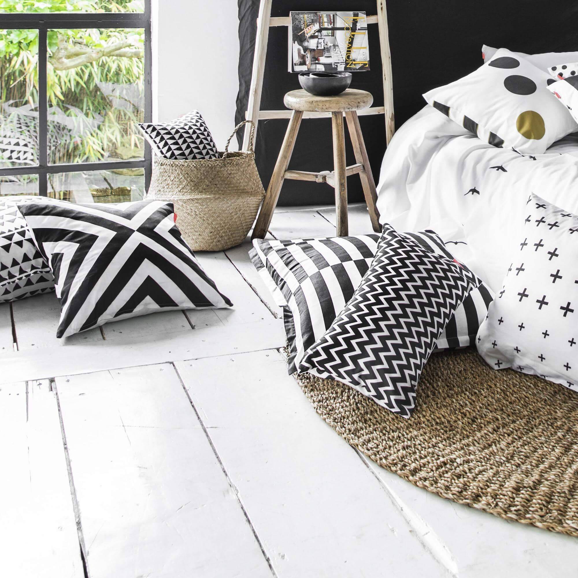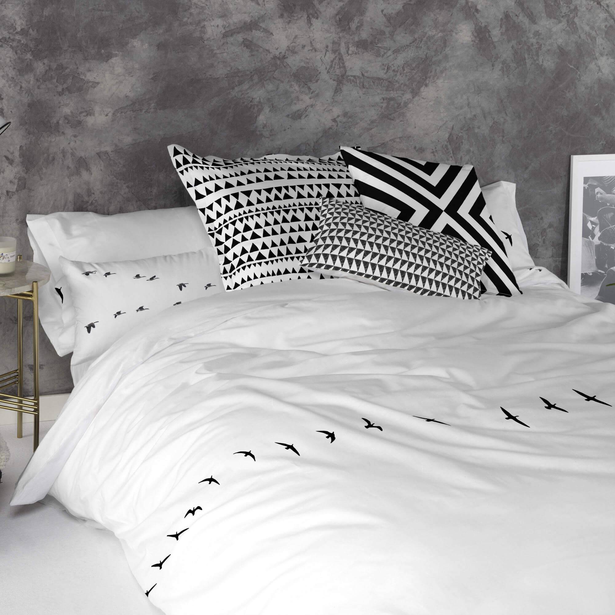 De combinatie van grafische zwart-witte chevronmotieven met grijsschaalprints van ganzen die in formatie vliegen, maken van de Trip kussenovertrekset uit de Blanc collectie een gedurfde maar strakke keuze voor elk bed. Gemaakt in Spanje van 100% katoen en 150 thread count, zorgen deze kussenhoezen voor een zachter gevoel en bieden ze een comfortabelere plek om achterover te liggen en te ontspannen aan het eind van de dag. Vullingen zijn niet inbegrepen.