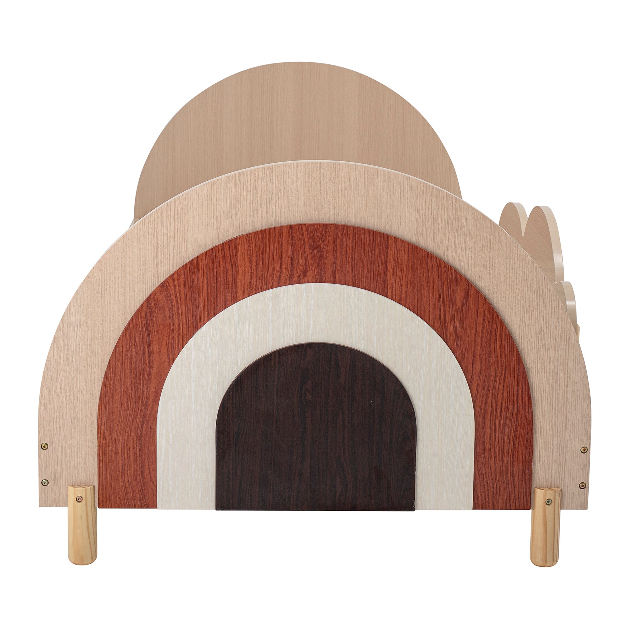 - Omkeerbaar hoofdbord met keuze tussen een regenboogmotief of rustige houtlook