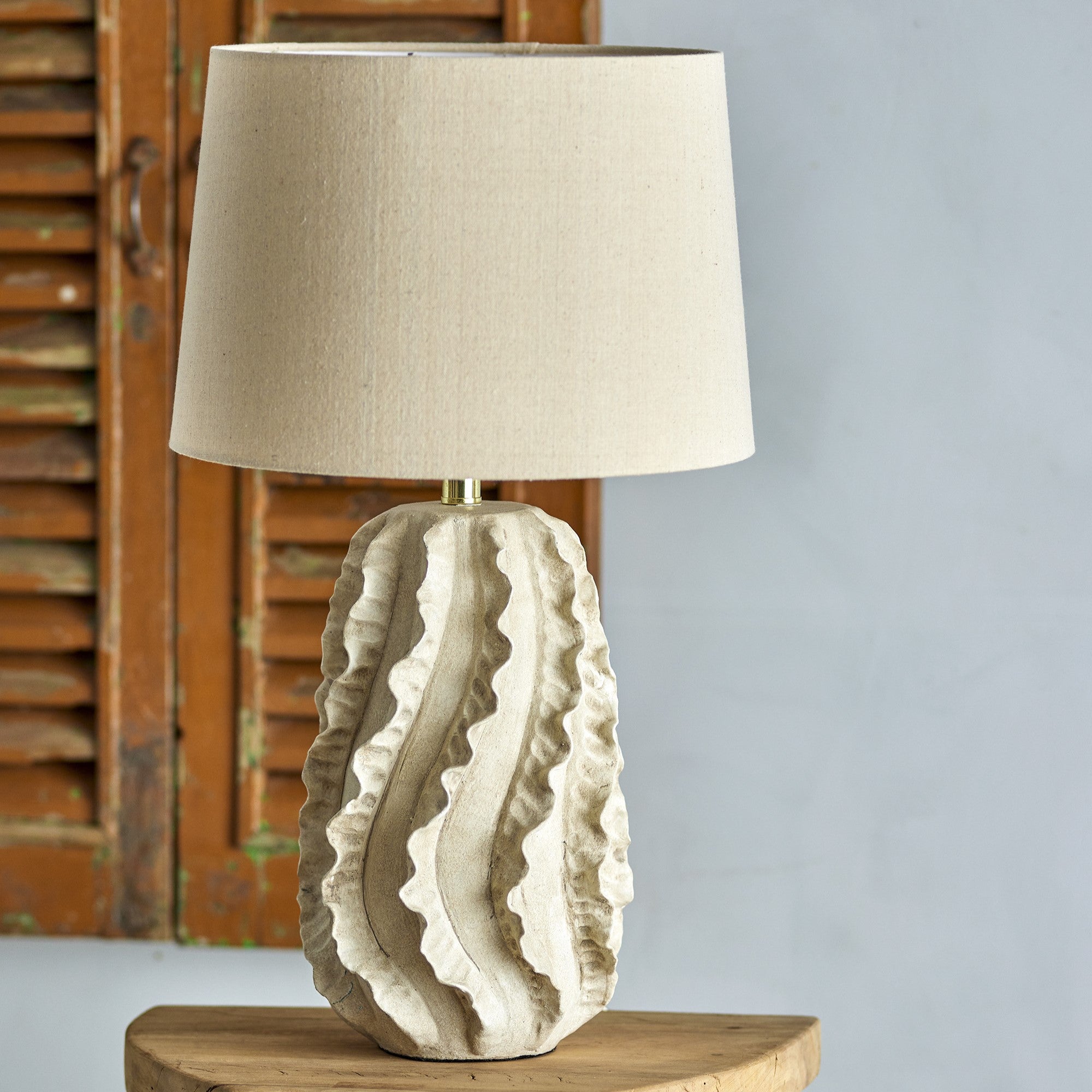 - De voet is gemaakt van terracotta en heeft een linnen lampenkap