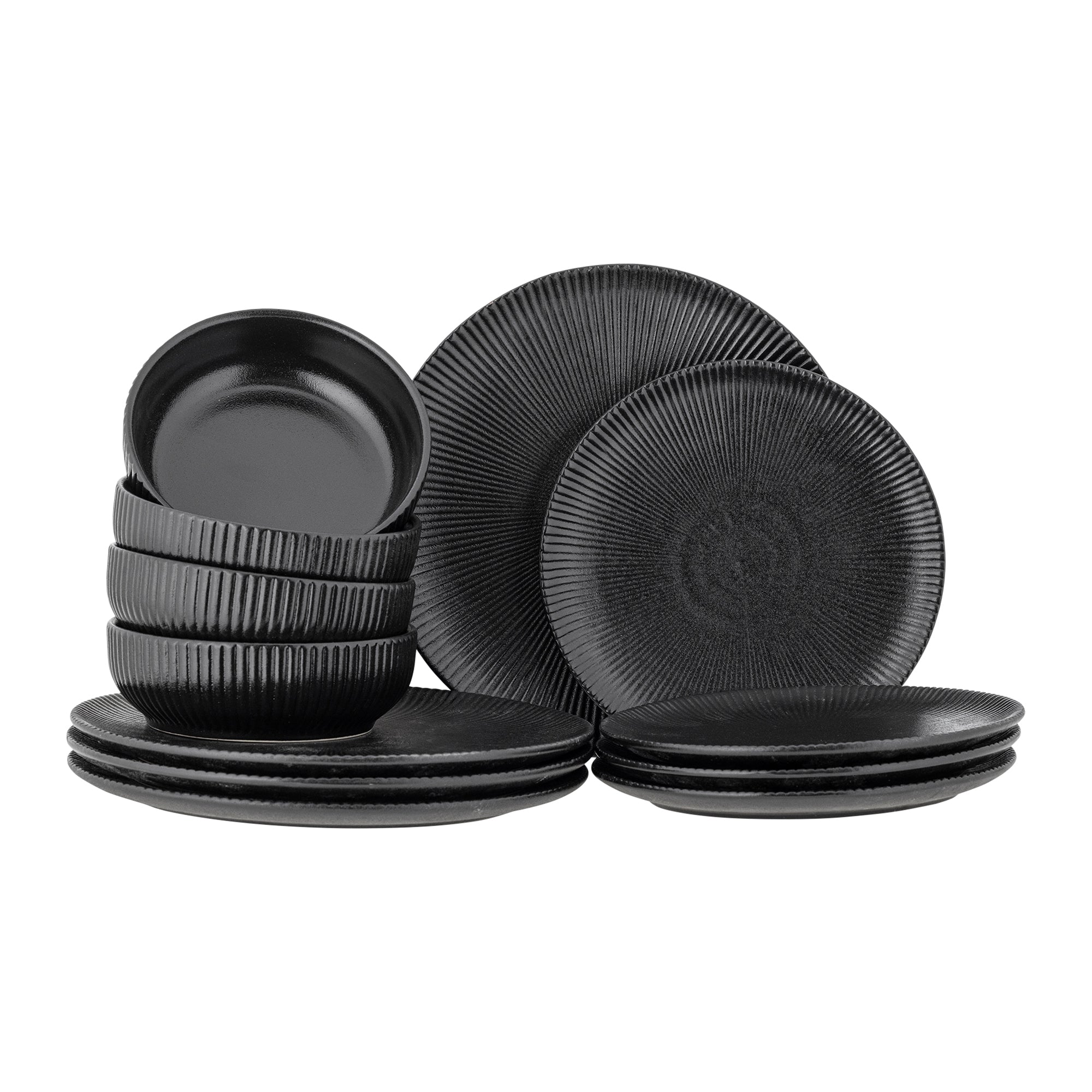 - 12-delige set van steengoed – 4 diepe borden, 4 dinerborden, 4 ontbijtborden
