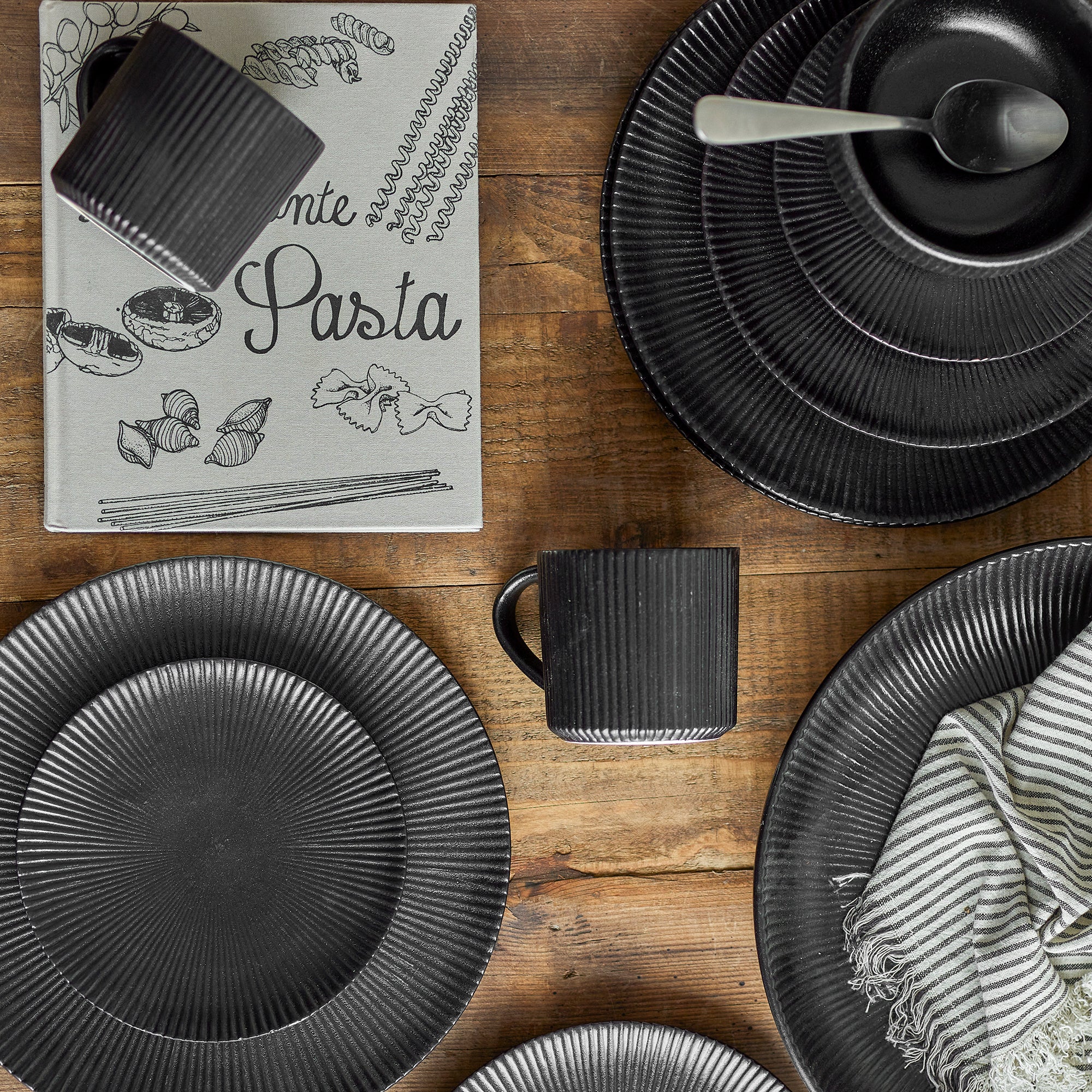 - Zwart glazuur met ribbelstructuur – elke stuk heeft een exclusieve look