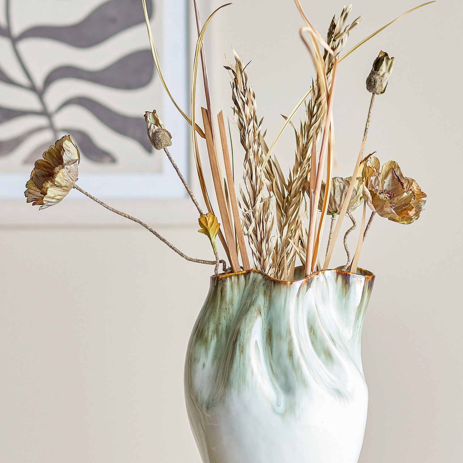 - Elke vaas heeft een uniek patroon door het natuurlijke glazuurproces