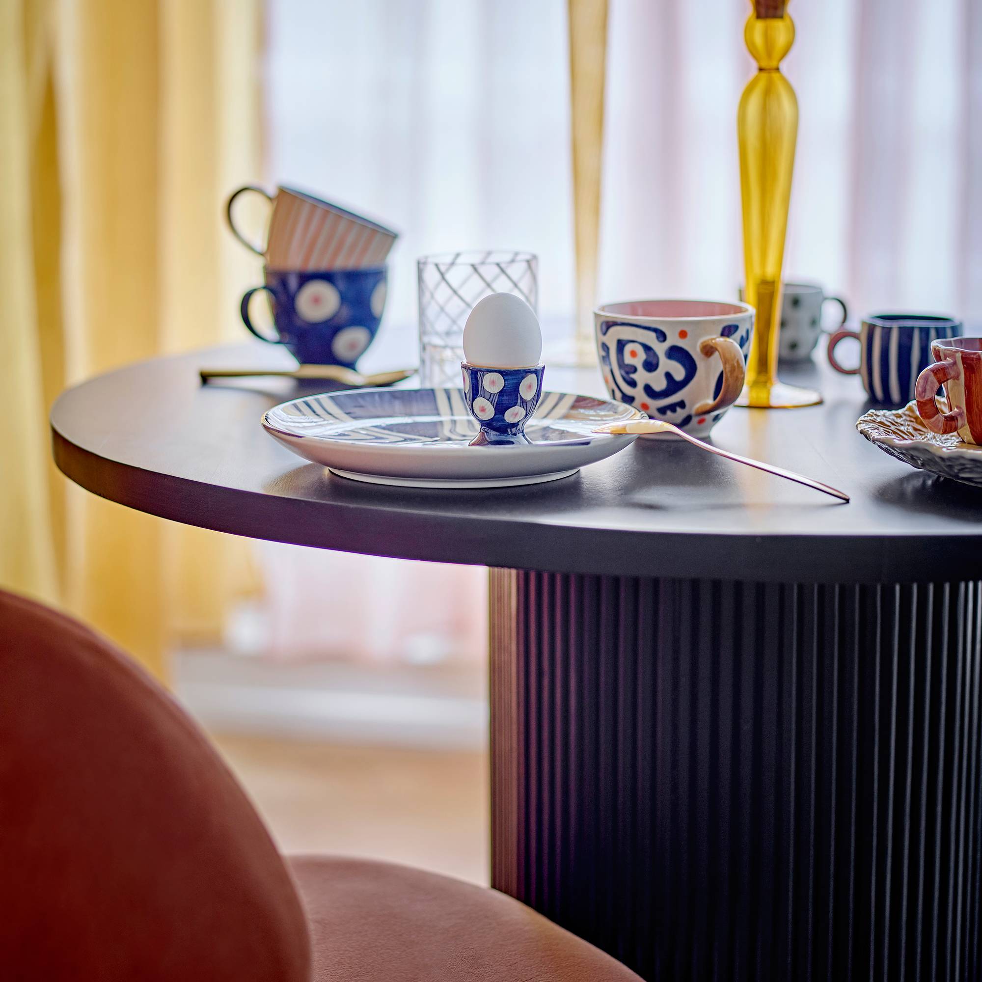 - Rond tafelblad op een cilindrische basis
