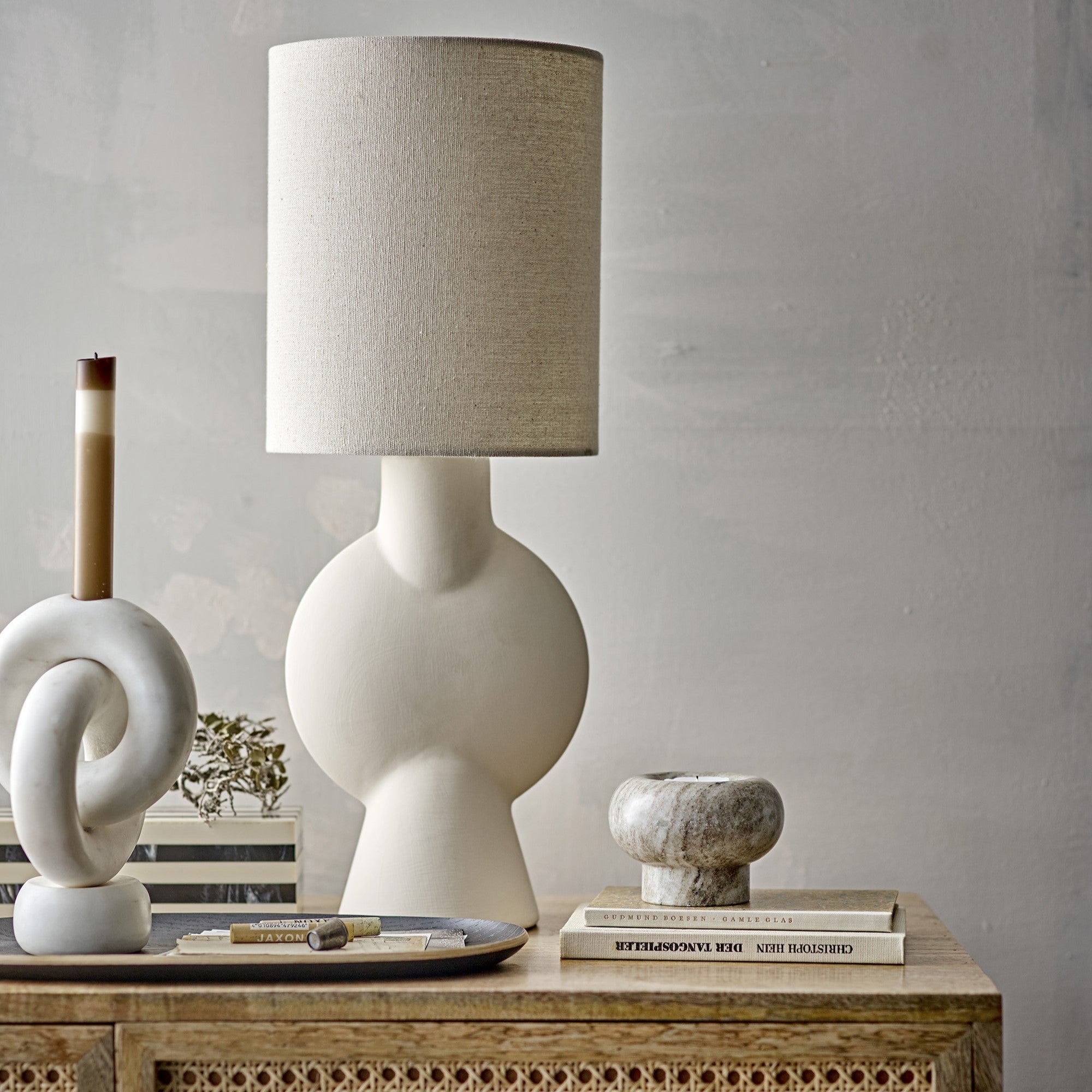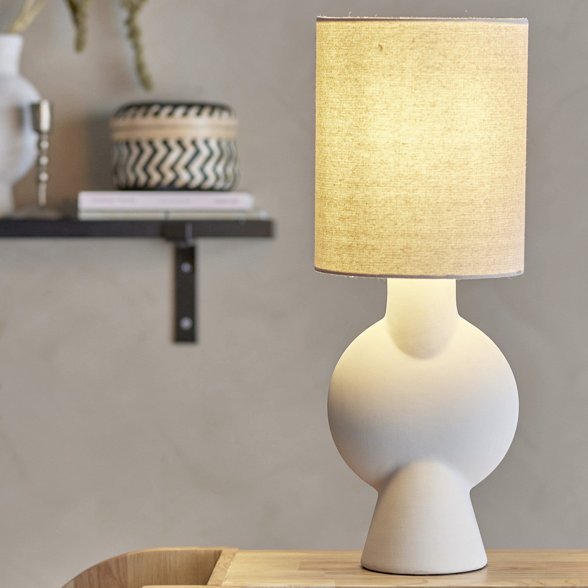 - Gemaakt van keramiek met een kap van natuurlijk linnen