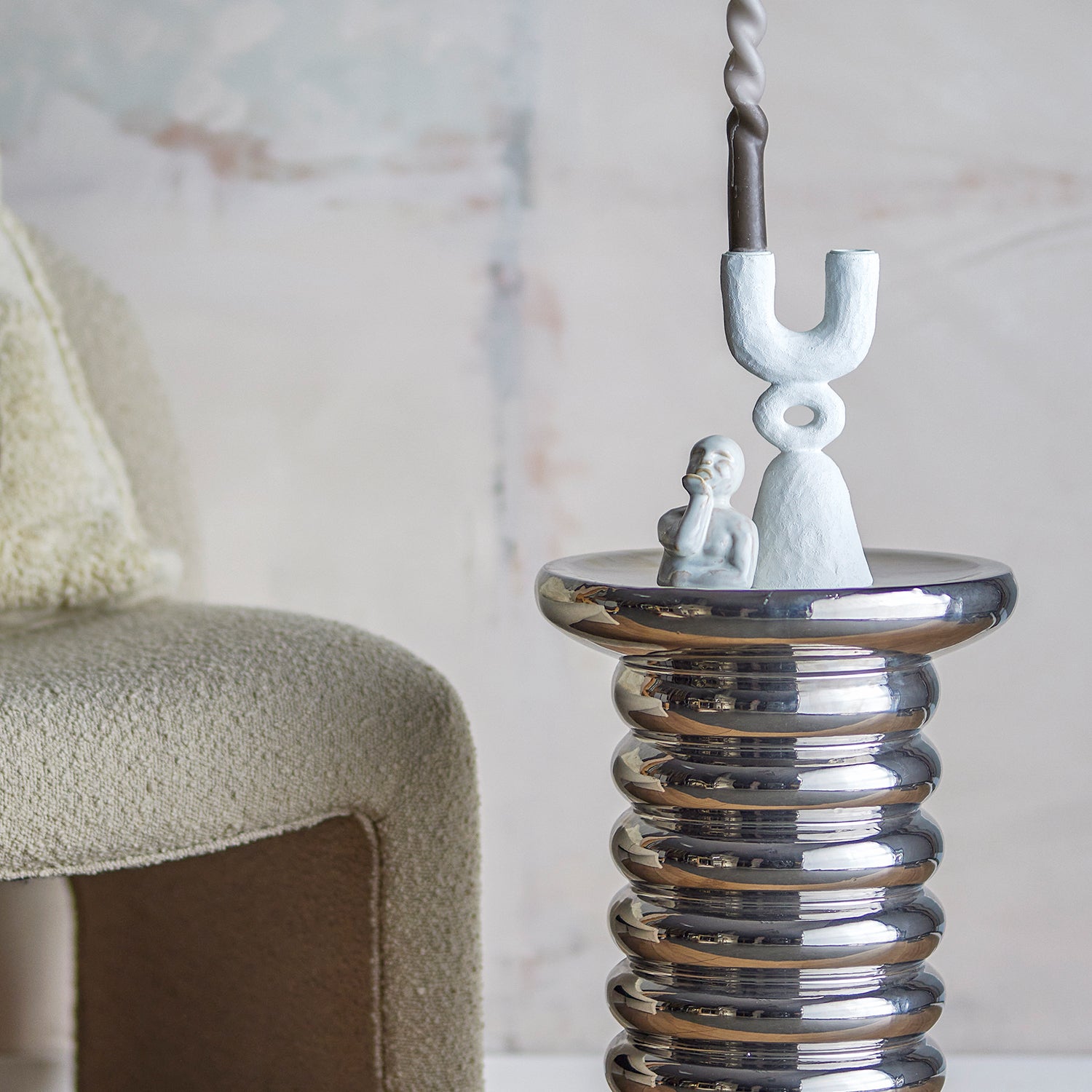 - Gemaakt van aardewerk met een chroomlook die glanst als een spiegel