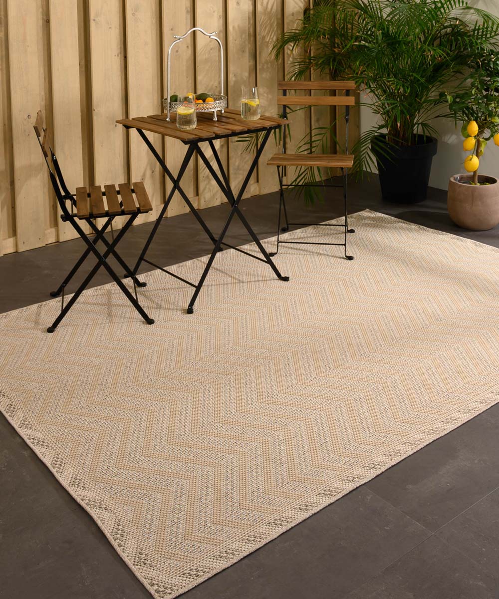 Jute buitenkleed Sunny Contour is vervaardigd uit een syntetische vezel. Jute is namelijk helemaal niet geschikt voor buiten. De vezel heeft de optiek van een geweven jute vloerkleed met de voordelen van een synthetisch geweven kleed. Zo is de houdbaarheidsdatum van het kleed langer en is het weersbestendig. Buitenkleden worden tegenwoordig ook vaak binnen gebruikt.