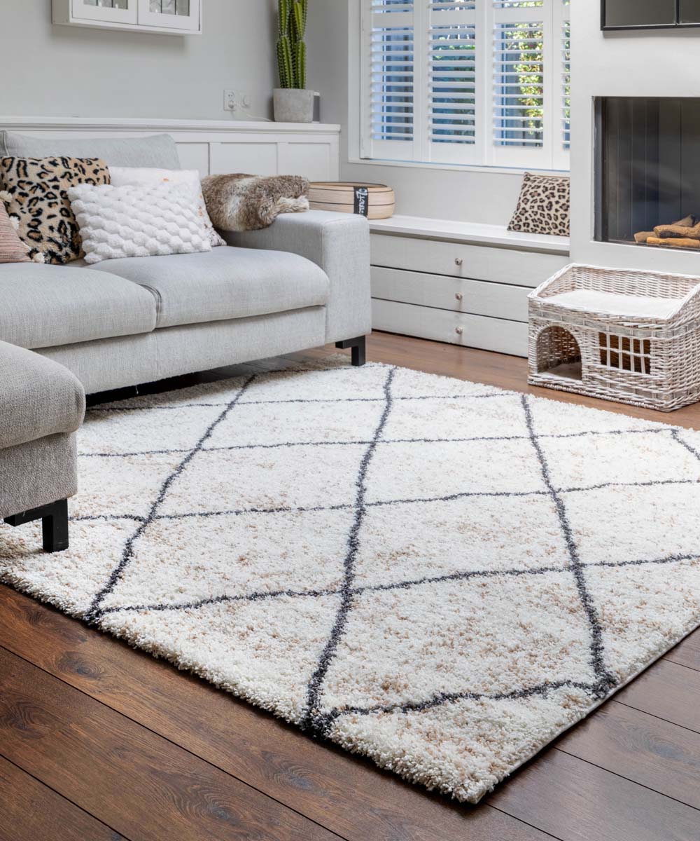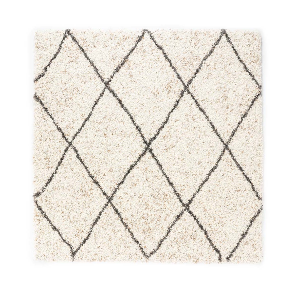 Boho&me Vierkant hoogpolig vloerkleed geruit Artisan - wit|grijs -