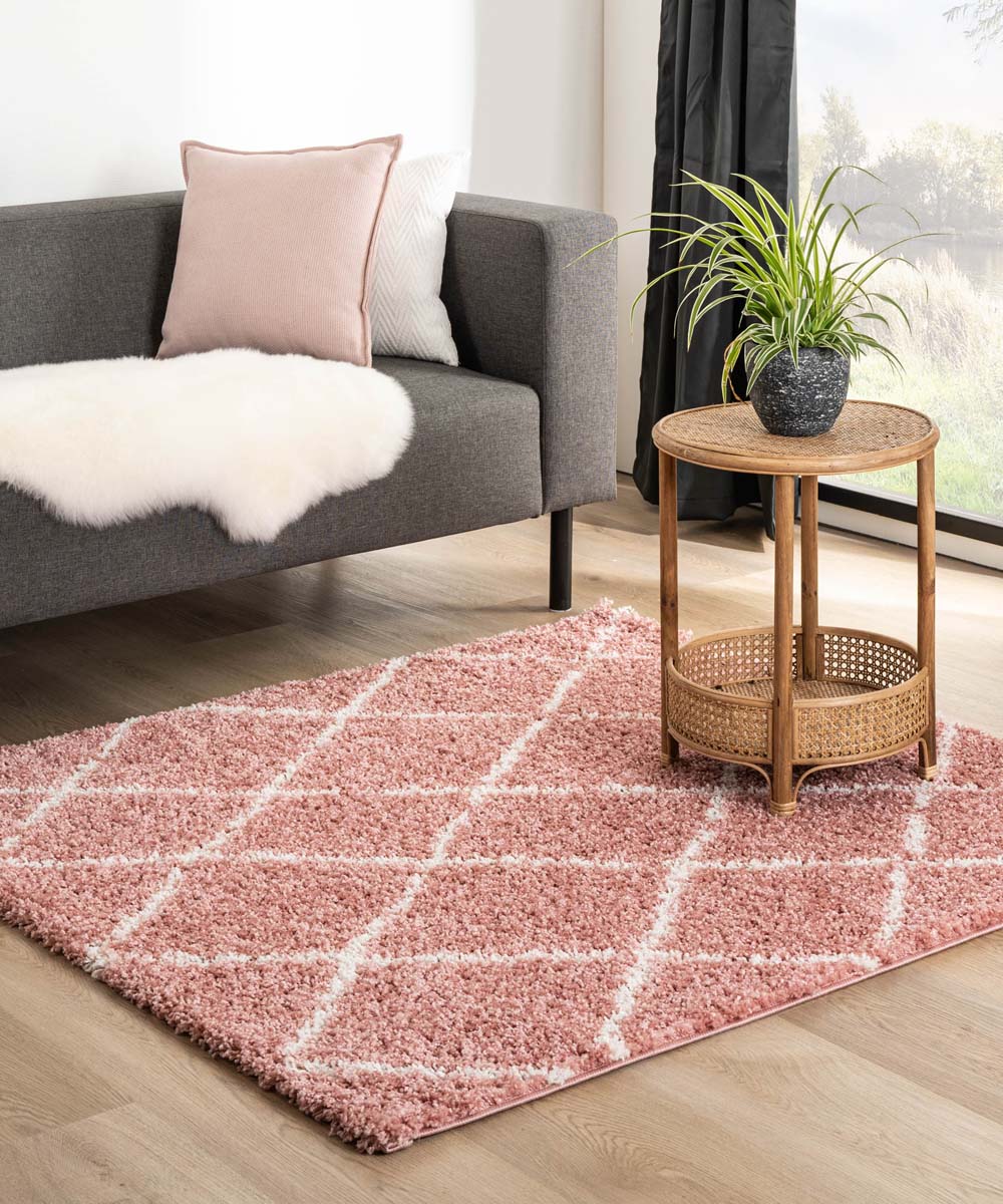 Boho&me Vierkant hoogpolig vloerkleed ruiten Habitat - roze|wit -