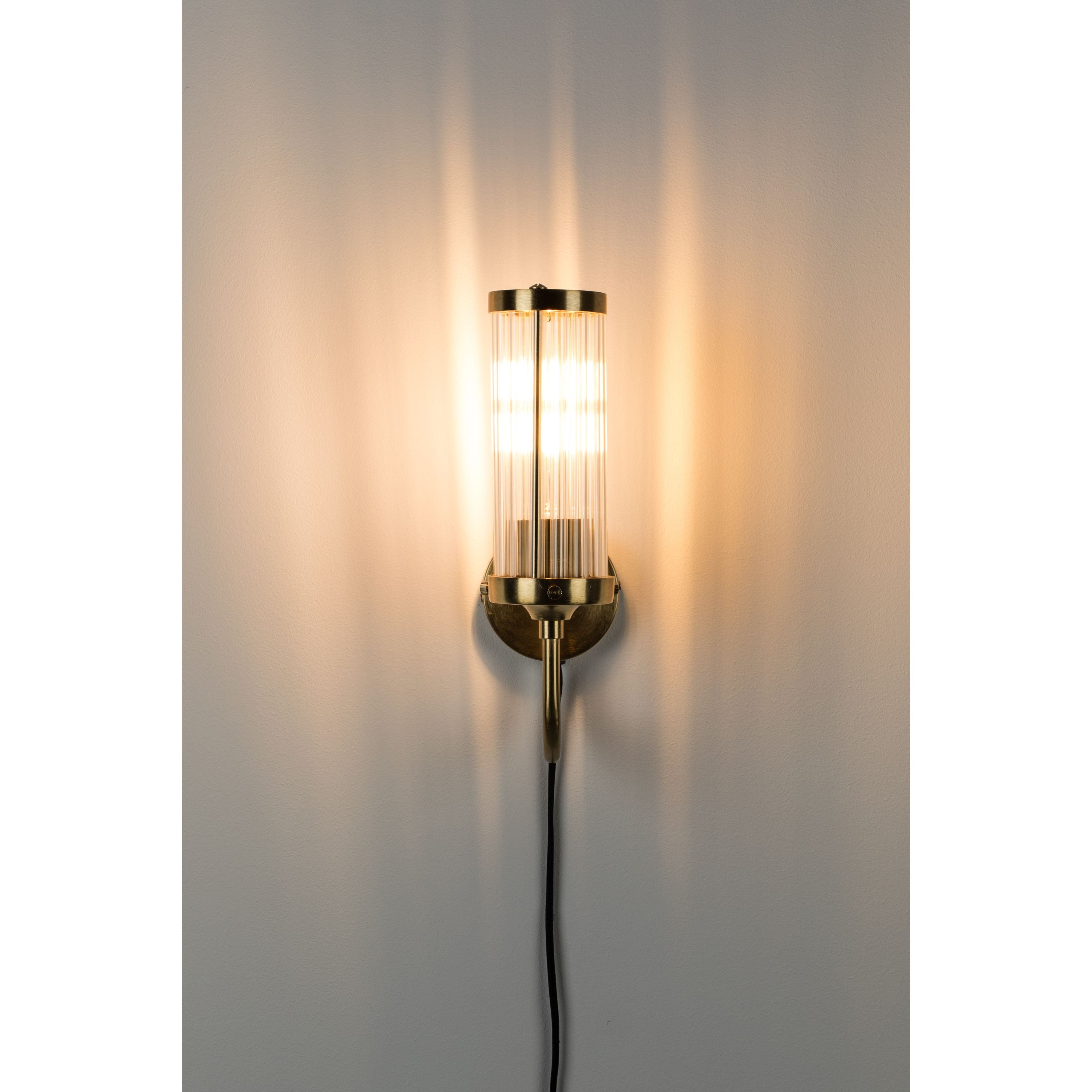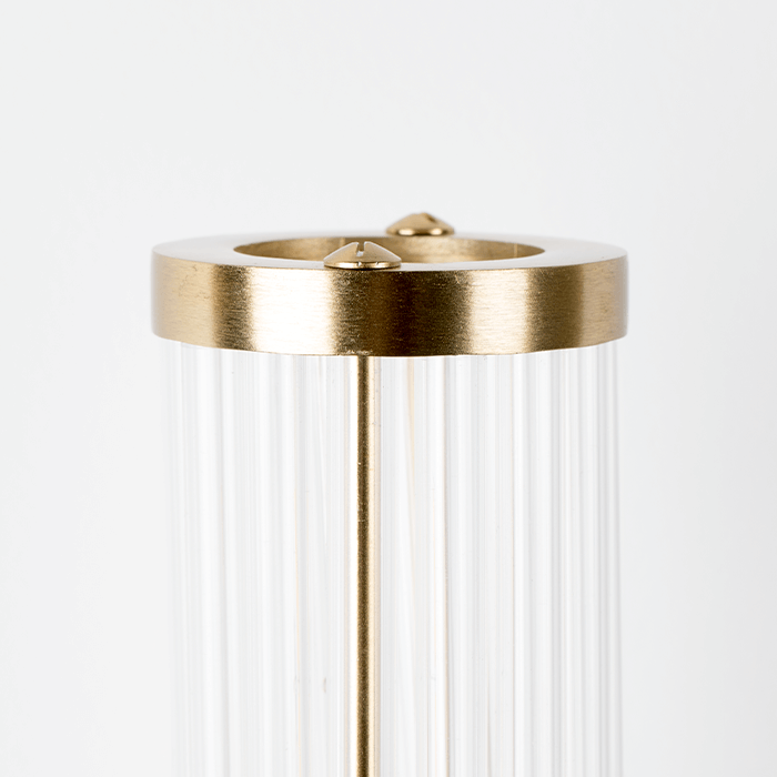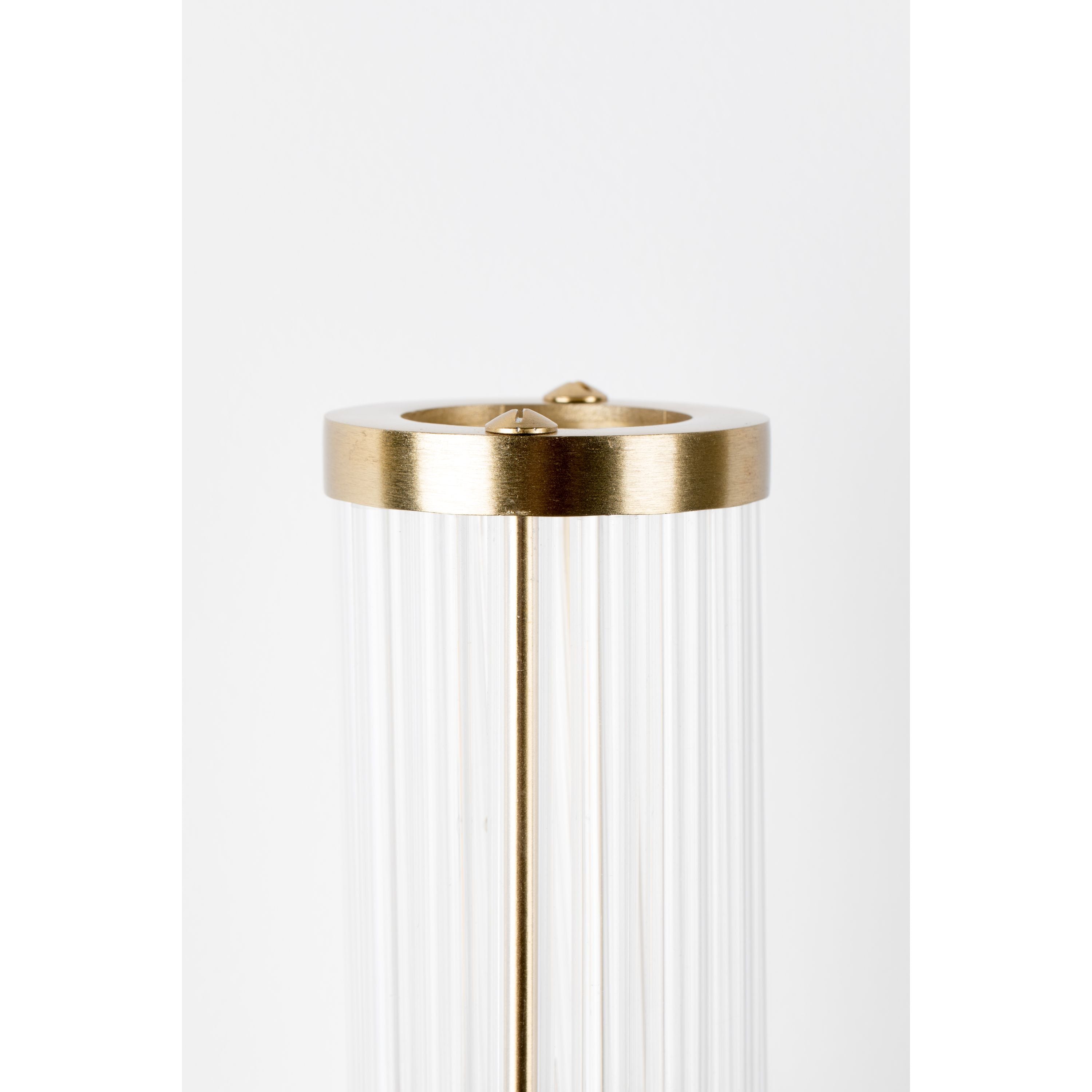 - Deze goudkleurige wandlamp is gemaakt met acrylbuisjes