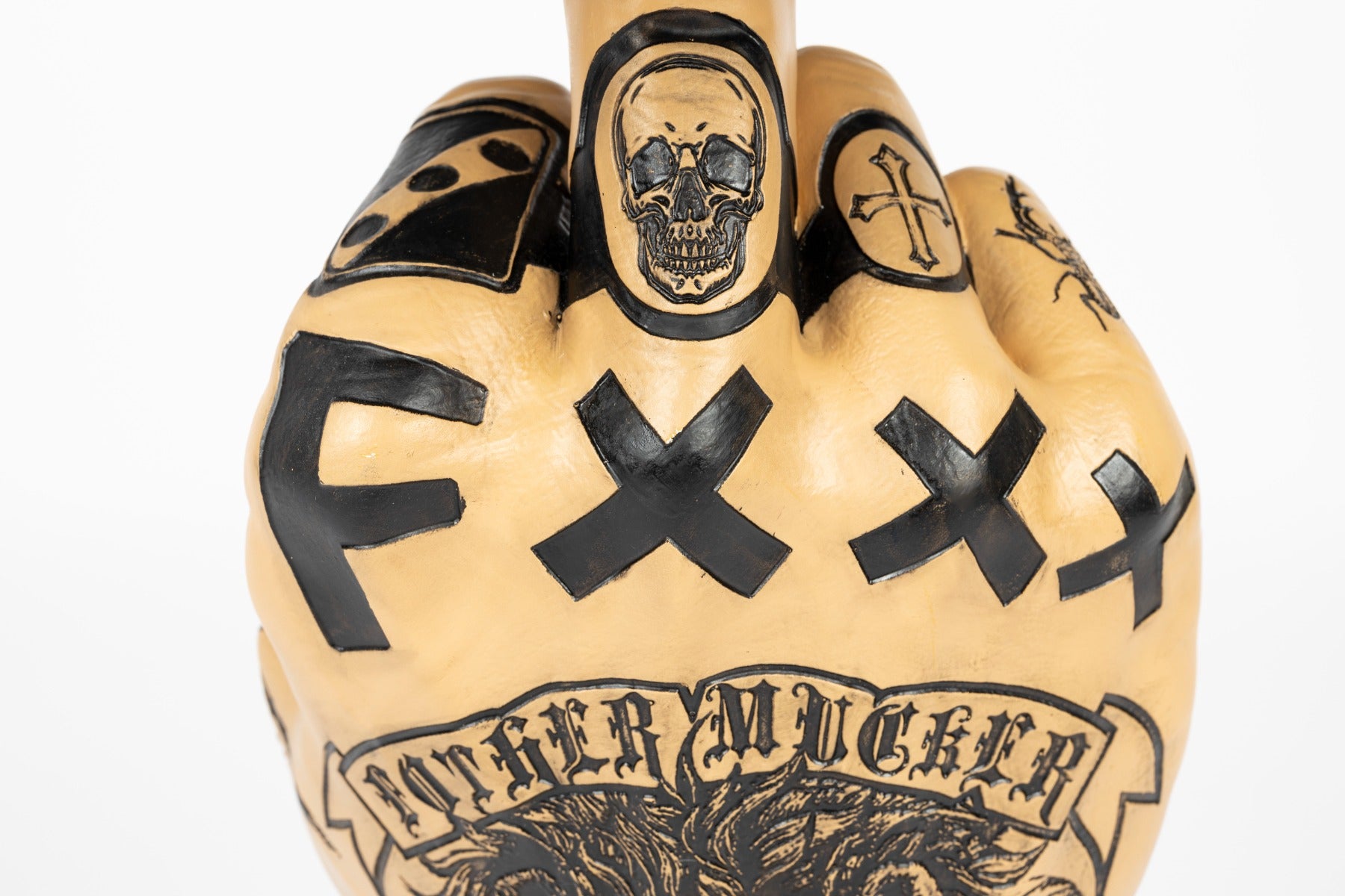 - Onderstel met als vorm een hand die een middelvinger opsteekt.