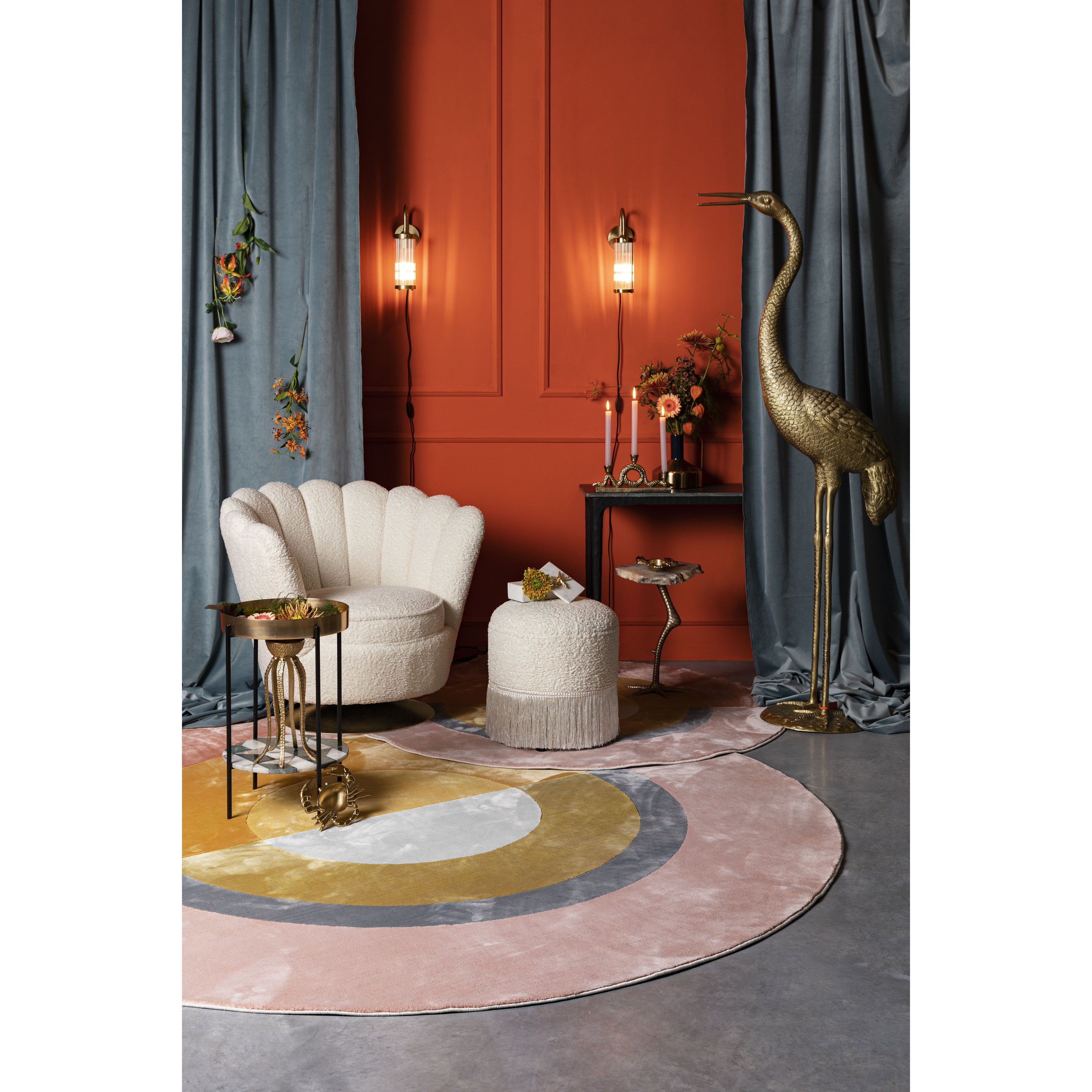 - Deze draaiende fauteuil staat op een mooie goudkleurige voet
