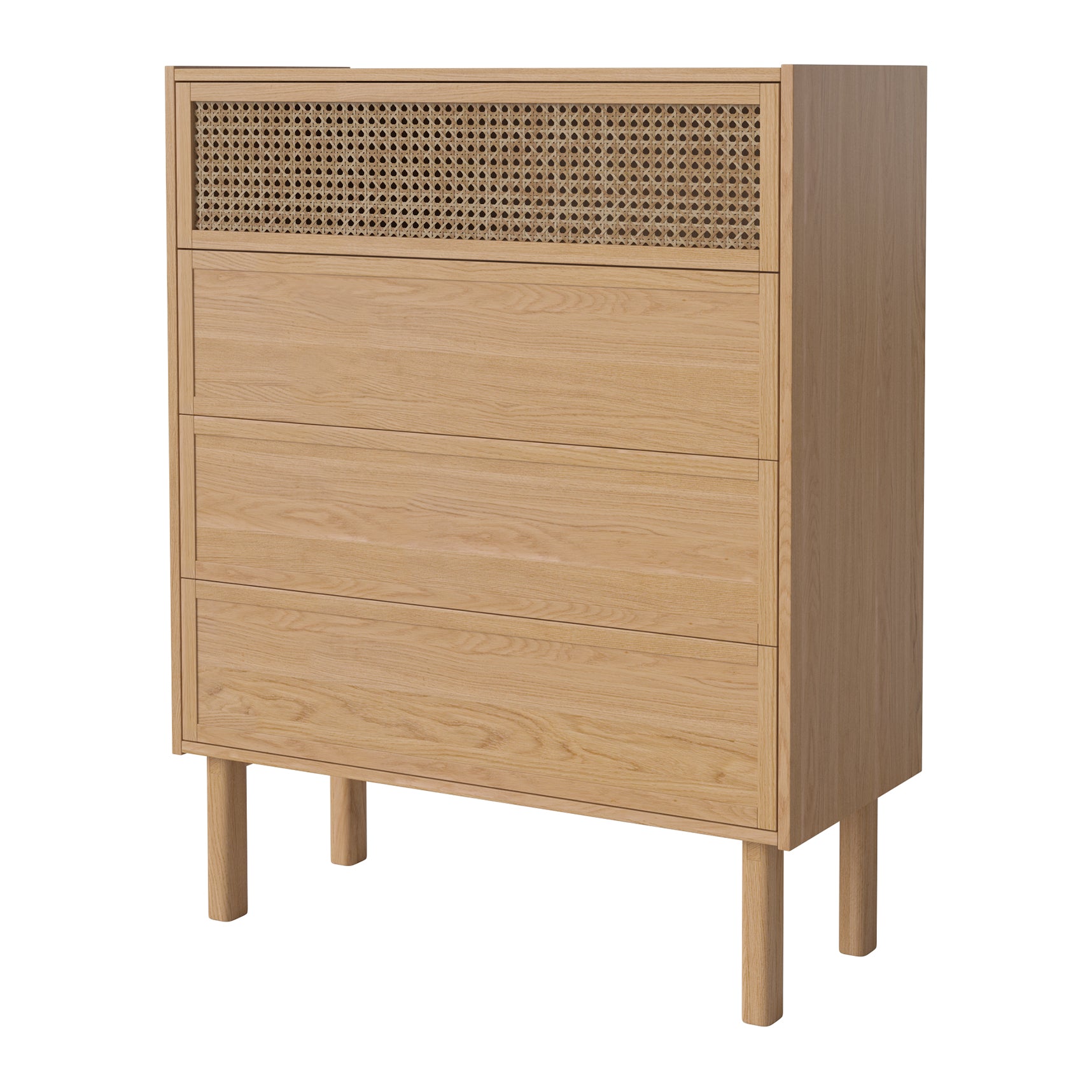- Drie ruime lades en een extra opbergvak achter de rotan deur voor extra opbergruimte
