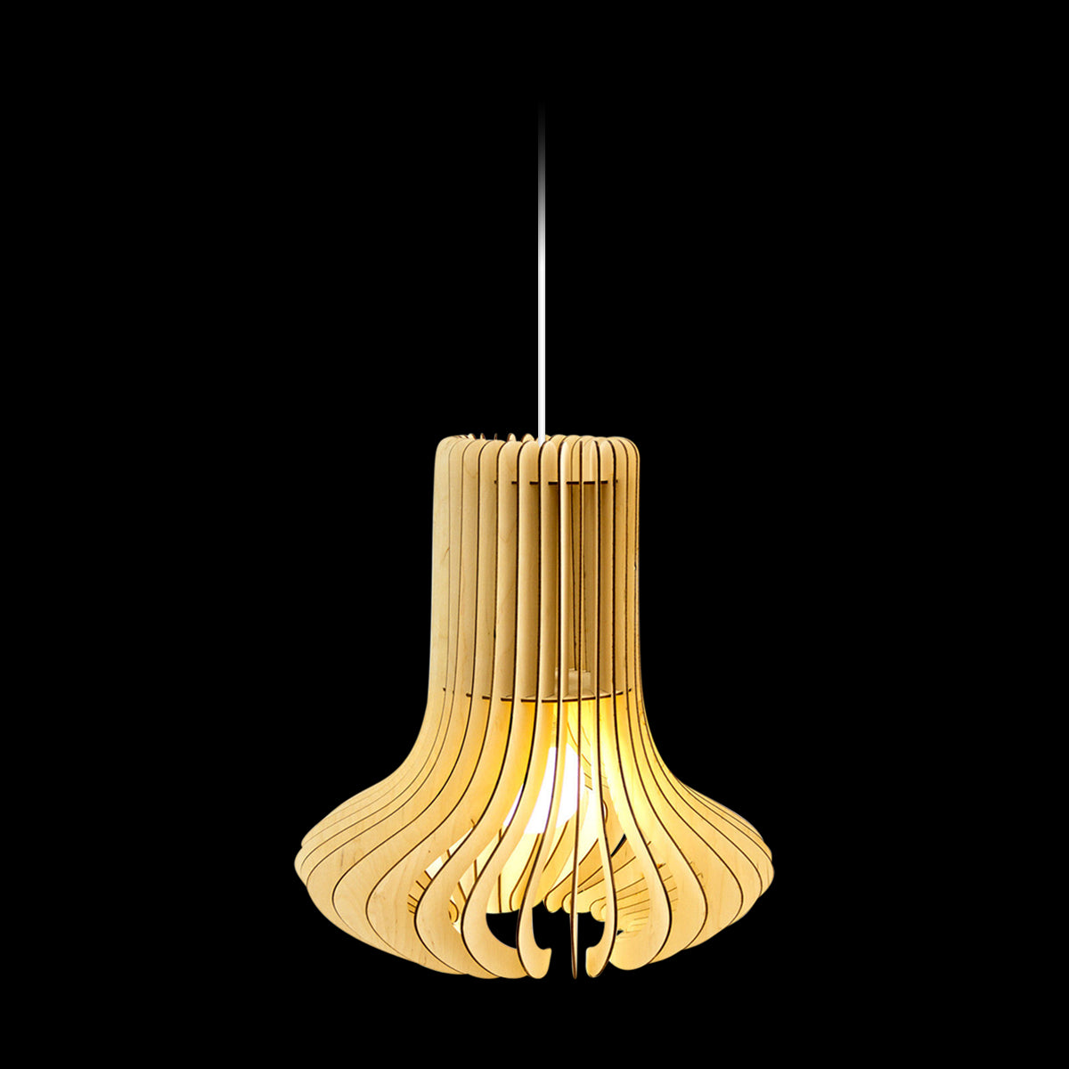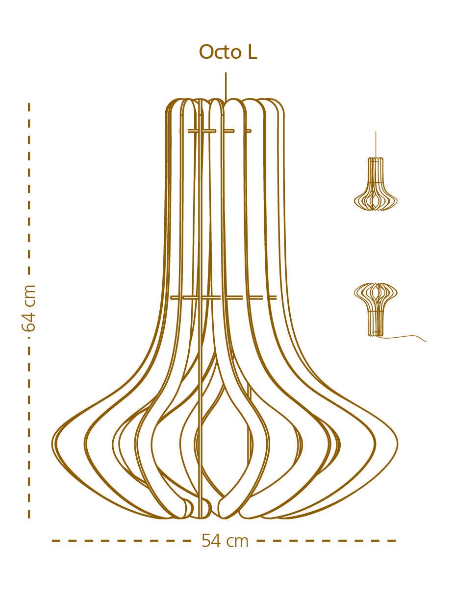 De Octopus bestaat uit boemerangs die stuk voor stuk in het frame worden geschoven. Ze vormen zo een peervormig ruimtelijk raster dat organisch en licht oogt.