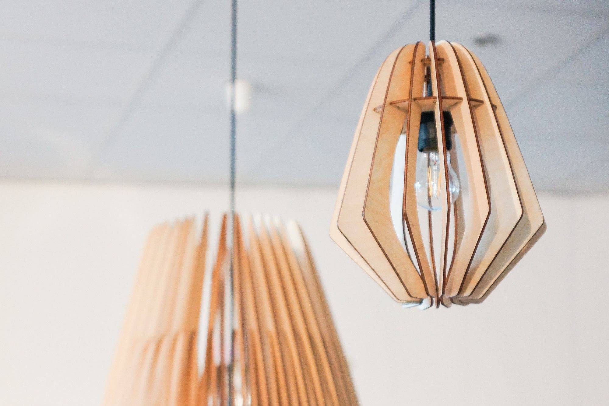 De bijzondere Original hanglamp, van het Portugese Merk Bomerango, is een eigentijdse lamp die is samengesteld uit houten boemerangs.