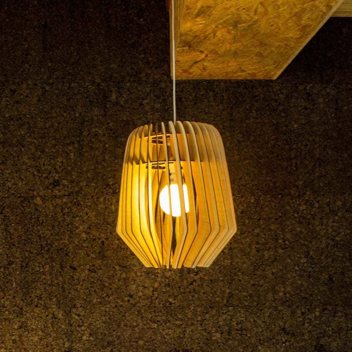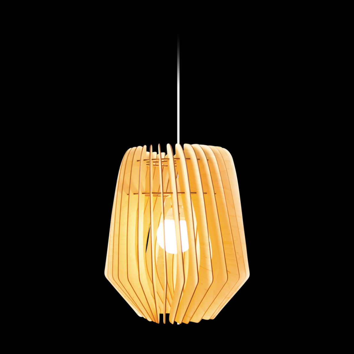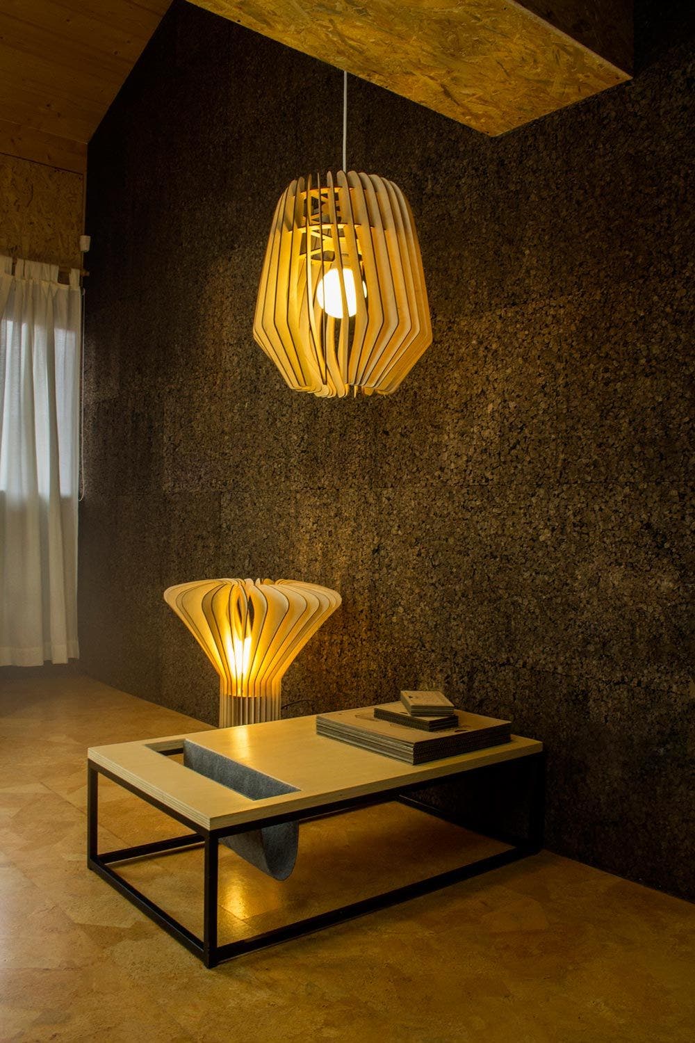 De Spin hanglamp van het Portugese merk Bomerango is een eigentijdse lamp die bestaat uit houten boemerangs.