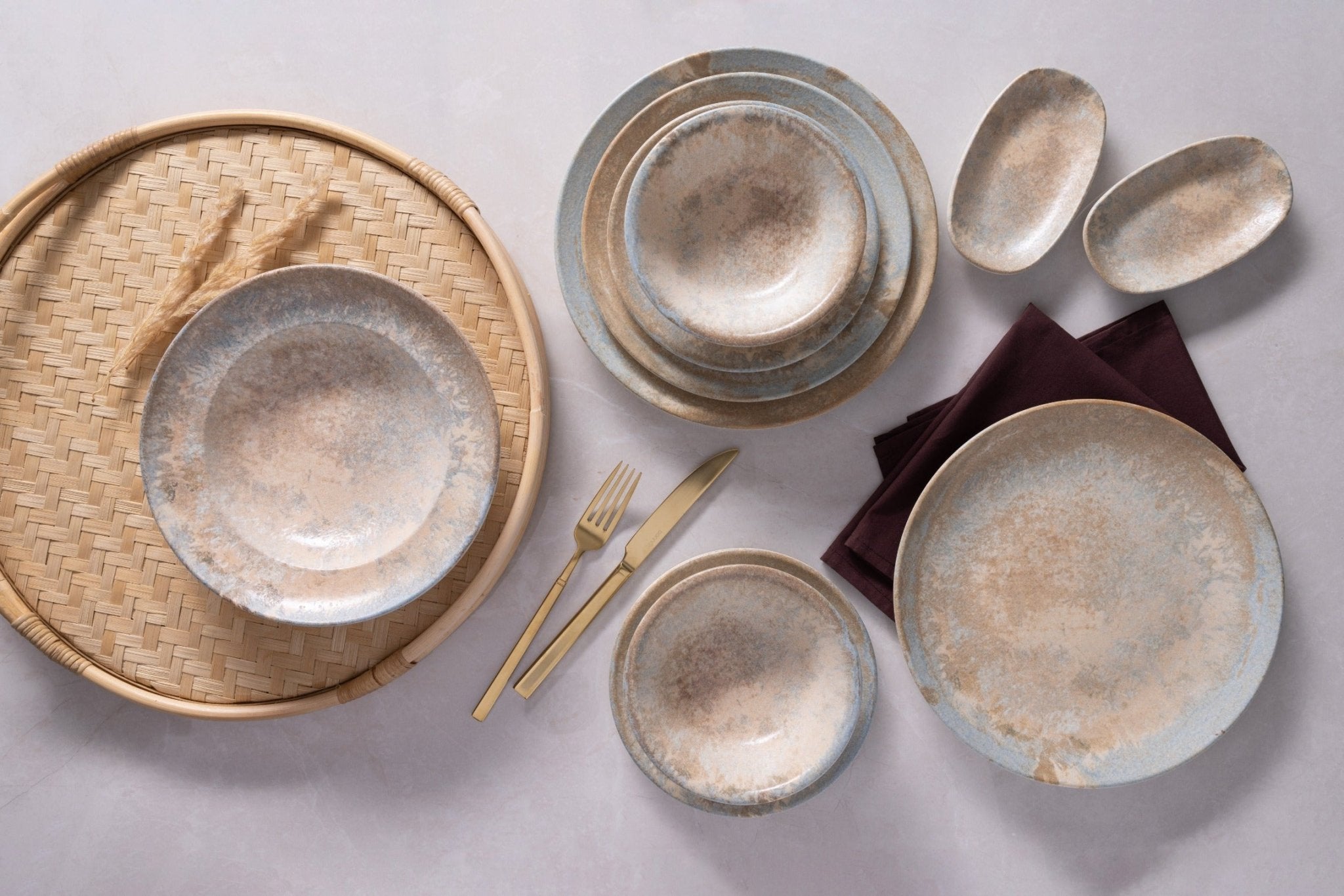 Het is tijd om de magische en unieke tinten van de natuur op je tafel te weerspiegelen! Geïnspireerd door de bodem, de belangrijkste levensbron die de bovenkant van de aardkorst omringt, brengt de Luz-serie met zijn abstracte kleuren de meest elegante vorm van eenvoud in uw presentaties.
