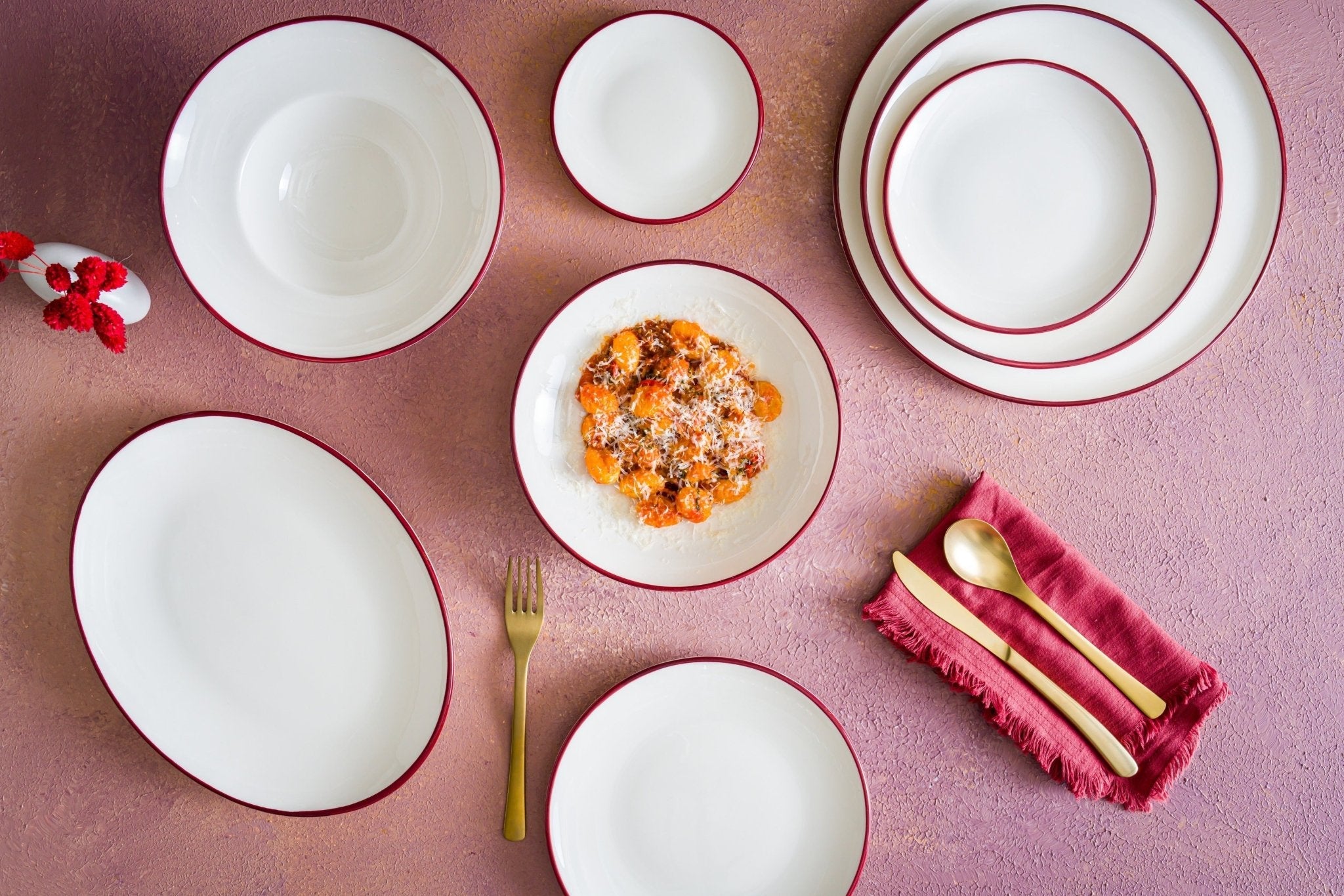 Bonna Serveerschaal - Linea Burgundy - Porselein - 18 cm - set van 2