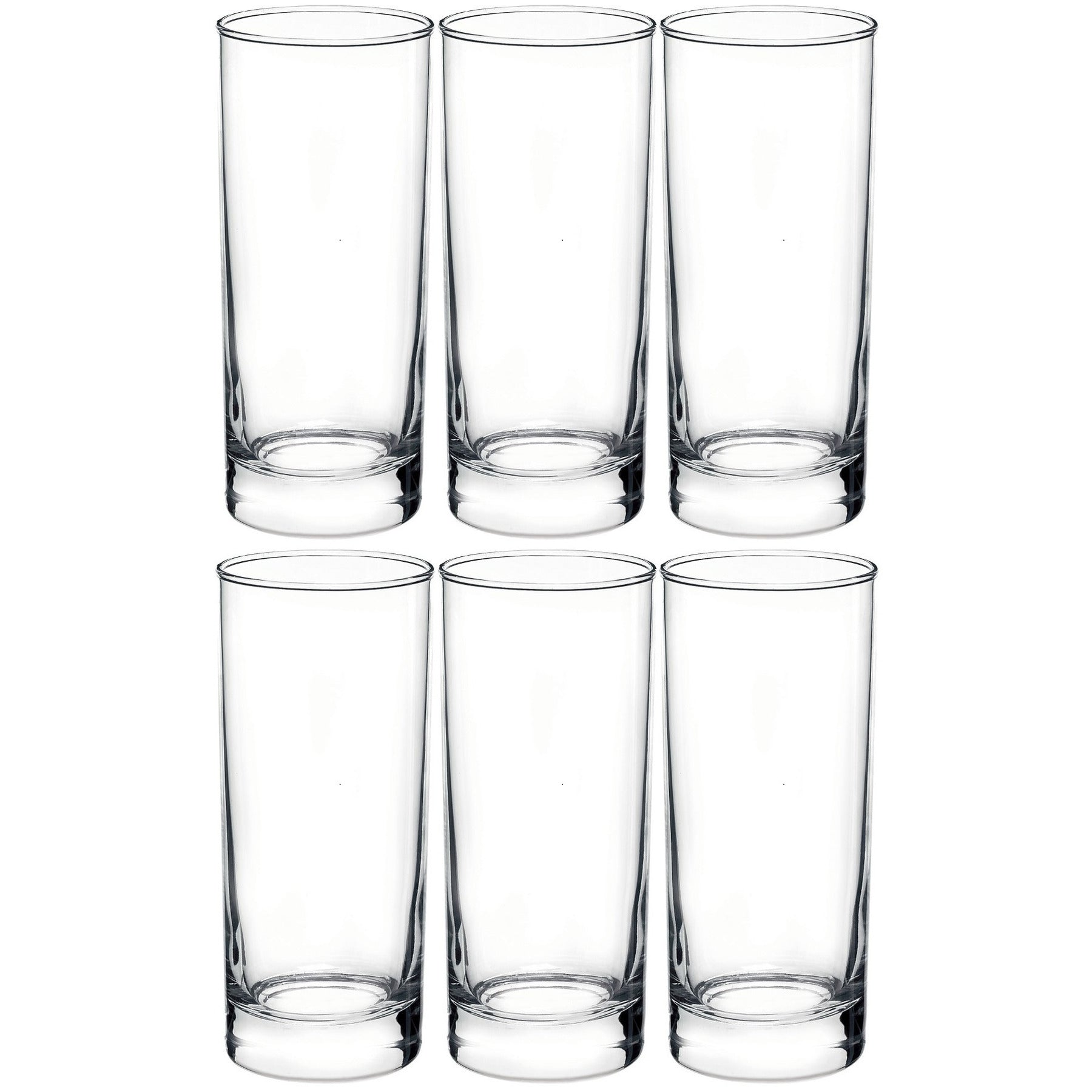 Set van 6x stuks waterglazen/longdrinkglazen transparant 280 ml. Afmetingen: ca. 8 x 14 cm. Vaatwasmachinebestendig: ja. Materiaal: hardglas. Drinkglazen geschikt voor water, sap en frisdrank.
