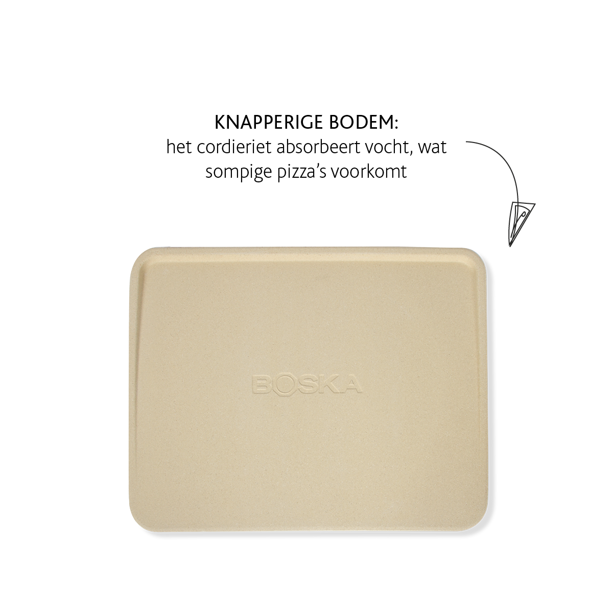 - KNAPPERIGE BODEM: het cordieriet absorbeert vocht, wat sompige pizza’s voorkomt
