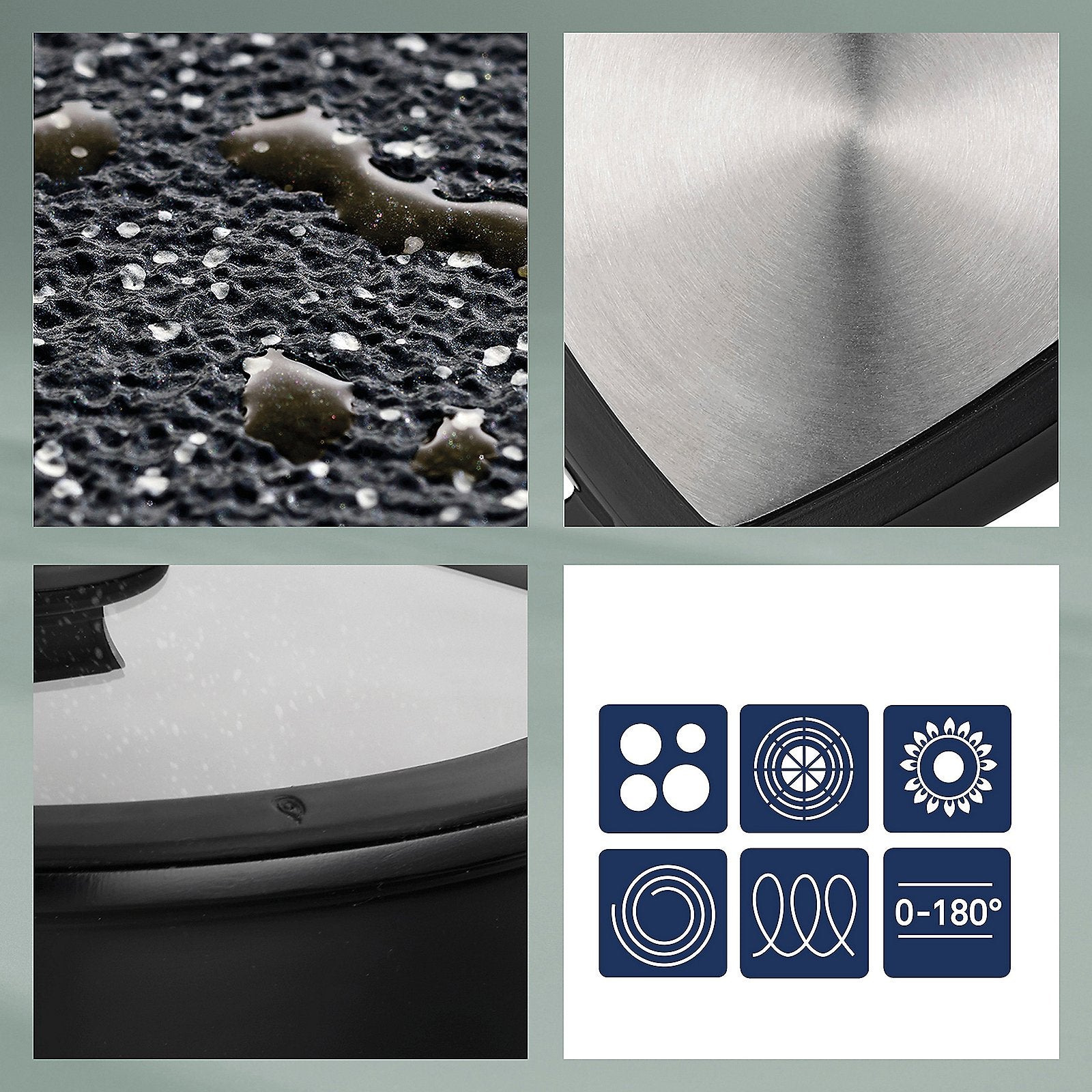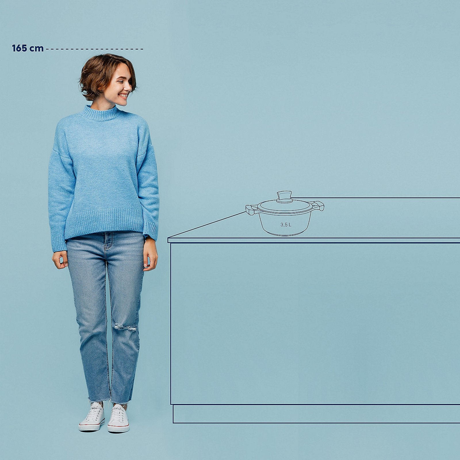 De pan wordt geleverd met een glazen deksel. Door dit deksel kan je eenvoudig de garing van het gerecht zien. Zodra je toch wilt roeren, kan je de deksel eenvoudig pakken aan het ergonomisch gevormde bakelieten greep. Na gebruik kan je de pan reinigen met heet water en een beetje afwasmiddel. Let op dat je de pan goed afdroogt voordat je deze in de kast zet.