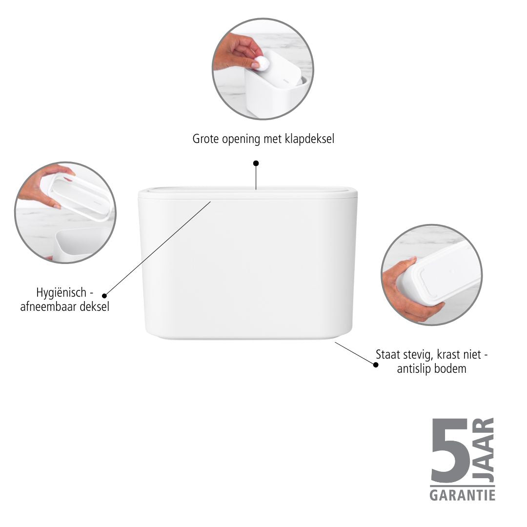 - Uniek afvalbakje van H 9,9 x B 15 x D 8,6 cm