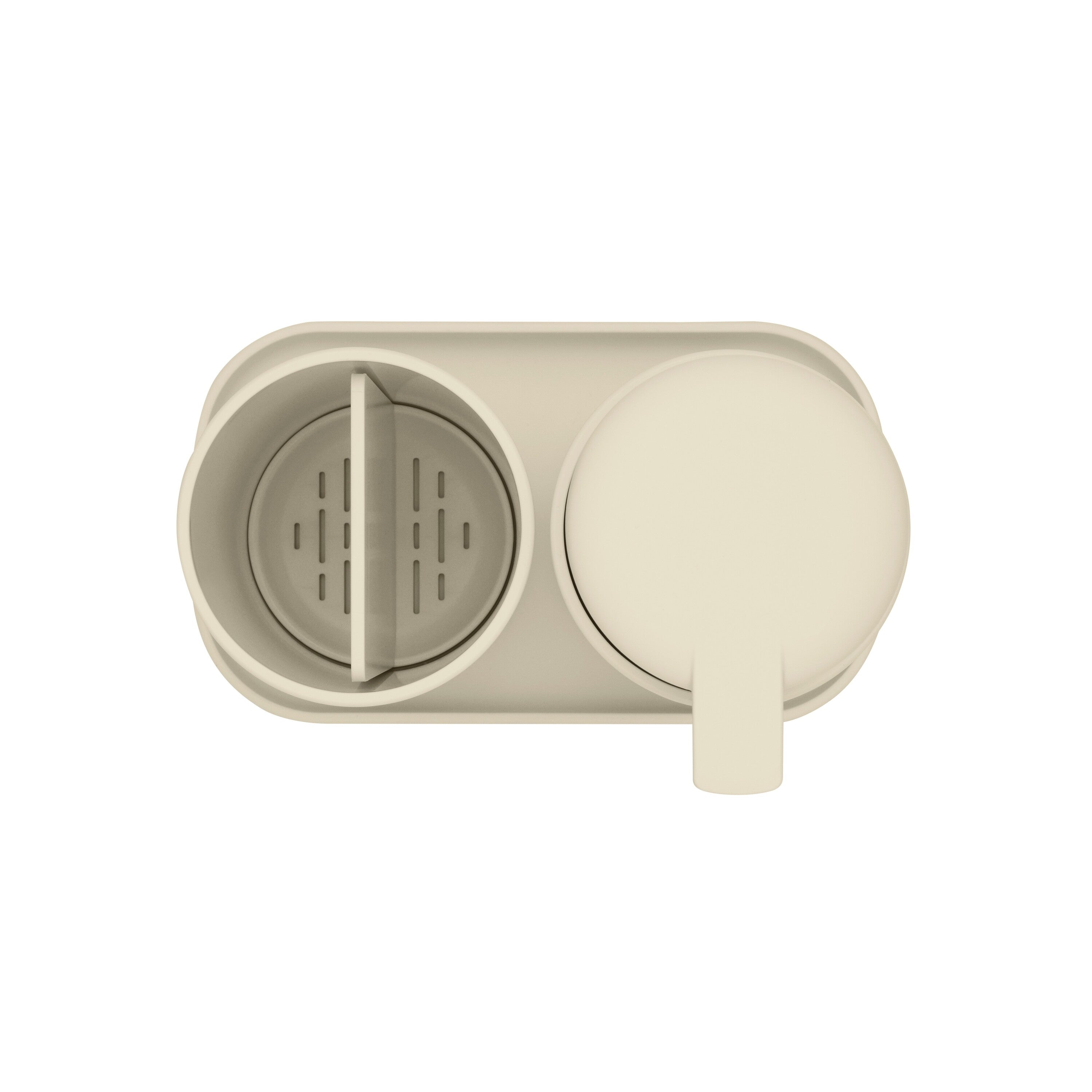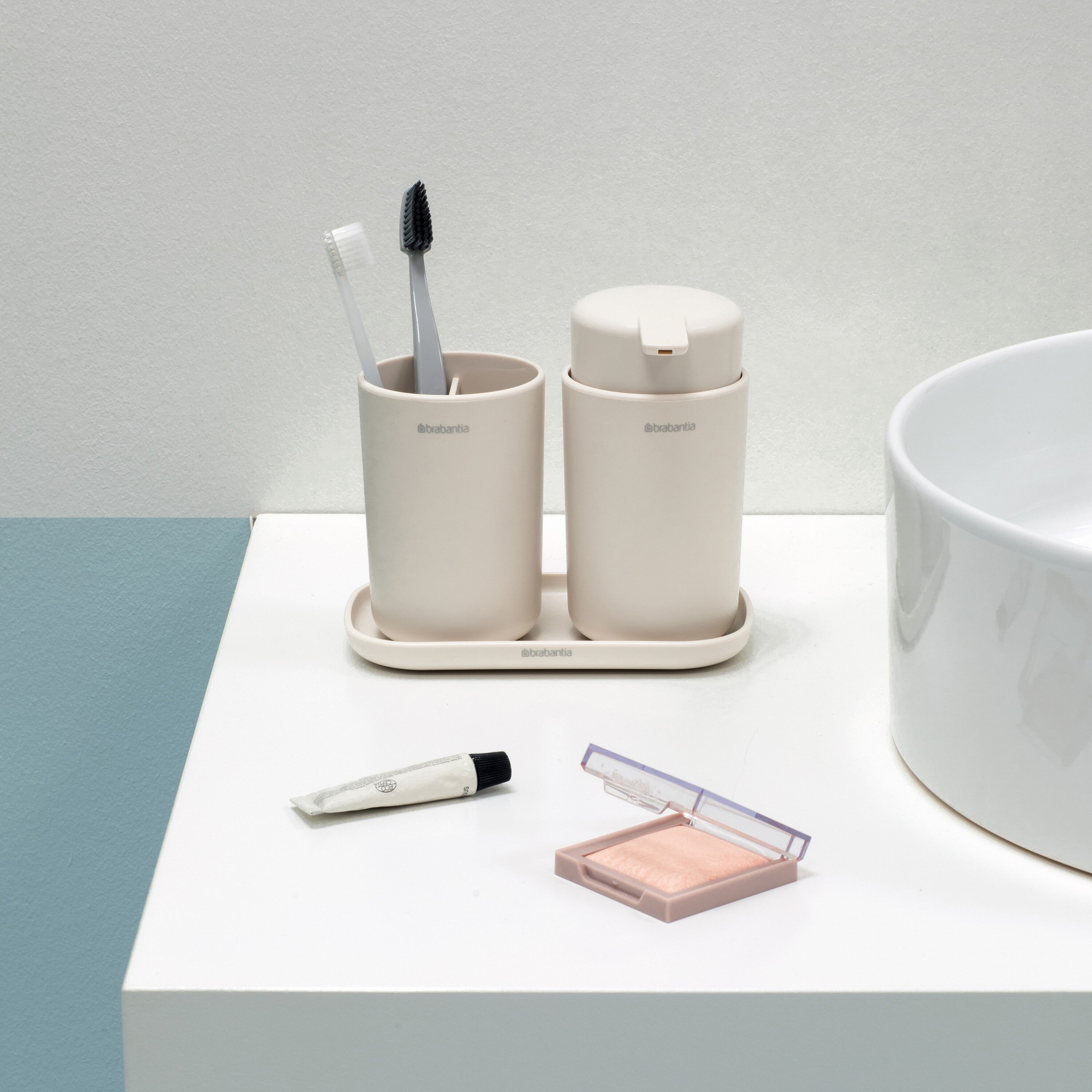 - Set van een zeeppomp en tandenborstelhouder op een schaaltje