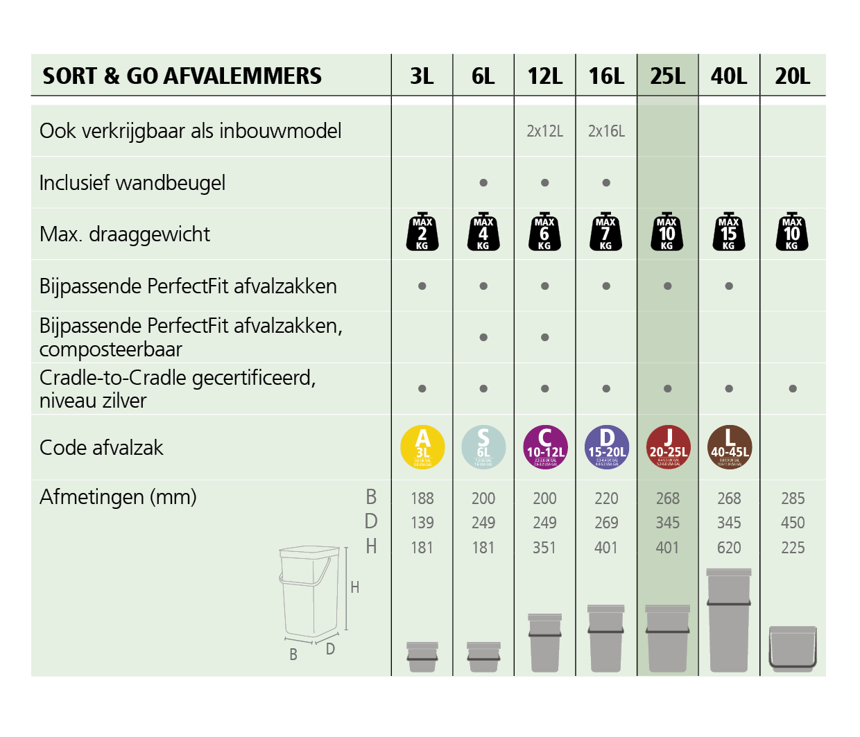 | lov prullenbak inhoud | 20 tot 29 liter |