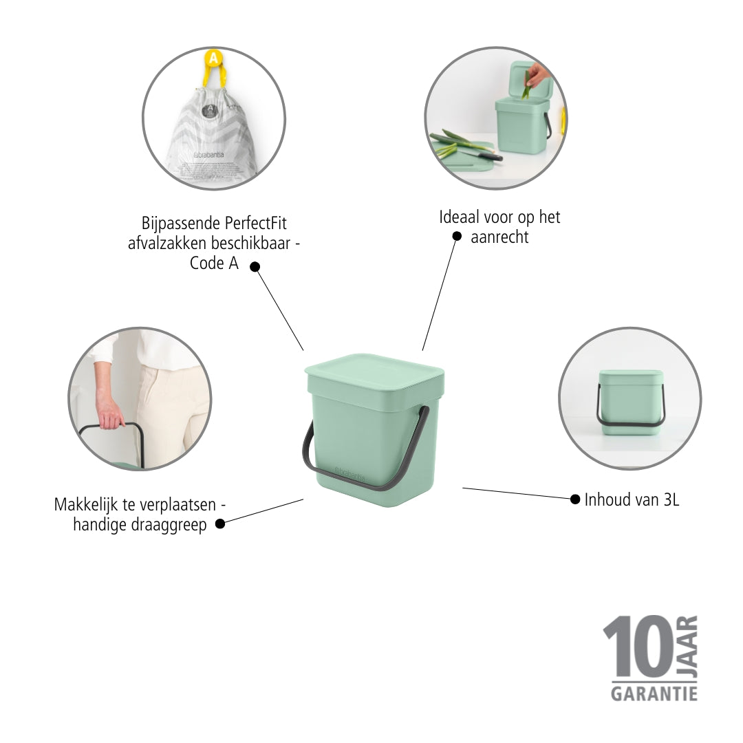 - Ideaal voor het weggooien van gft- en ander klein keukenafval