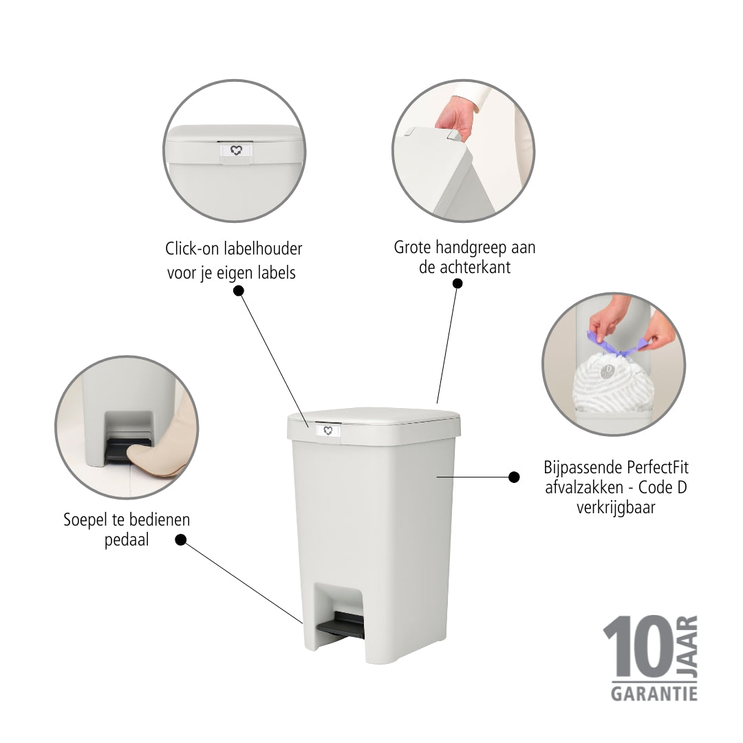 - Met een inhoud van 16 L, geschikt voor Brabantia PerfectFit afvalzakken (Maat D)