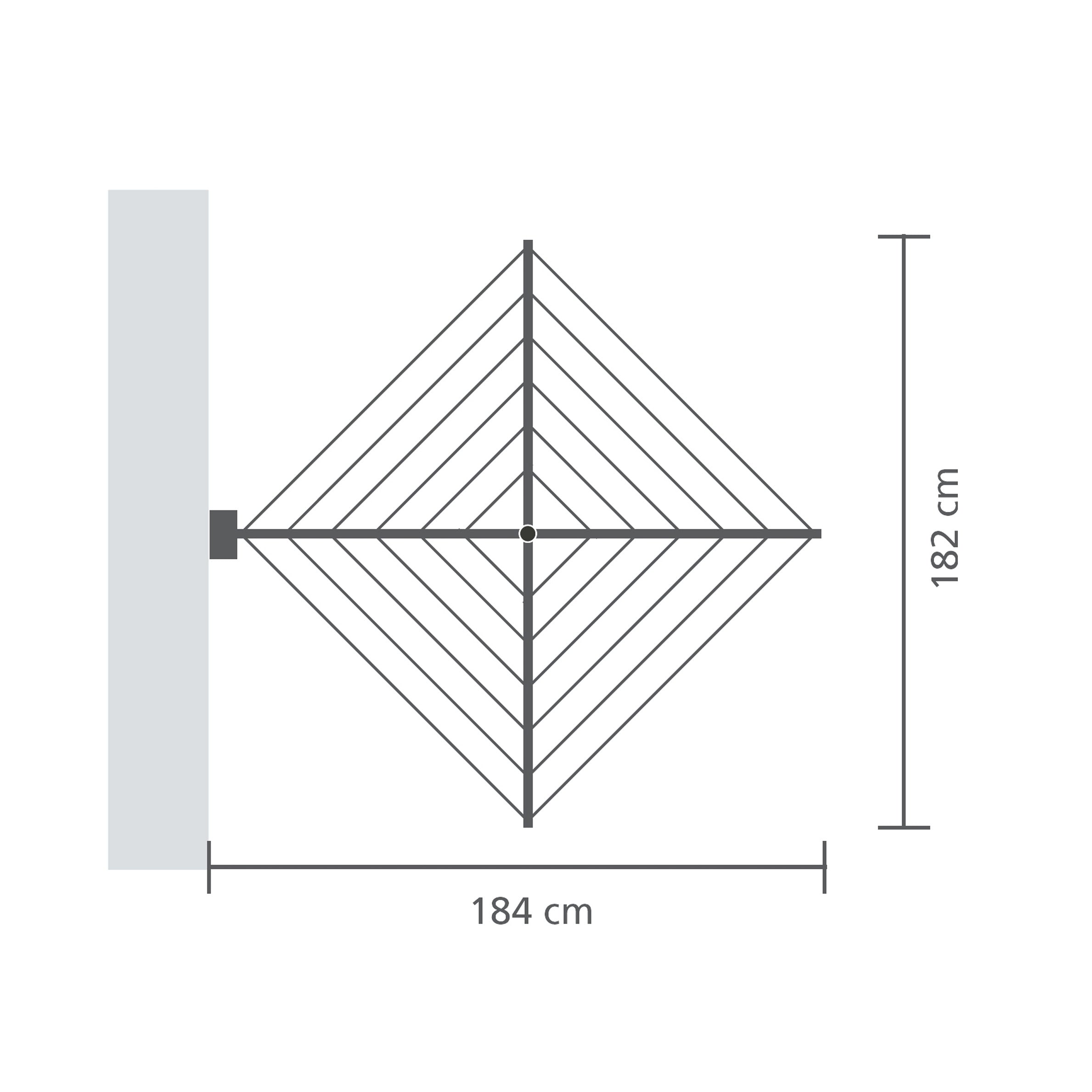 - Afmetingen: H 109 x B 184 x D 182 cm (spanwijdte 184 cm)