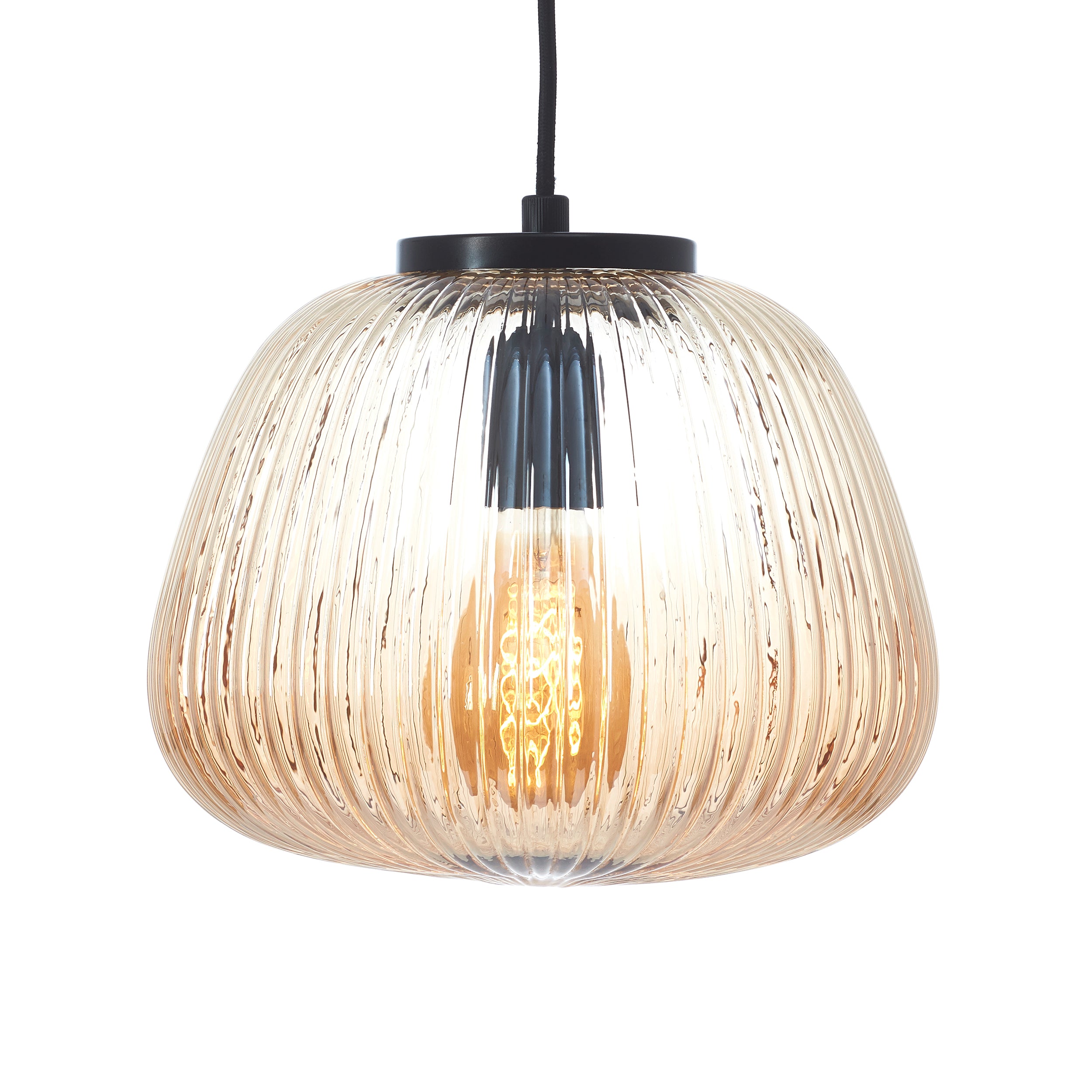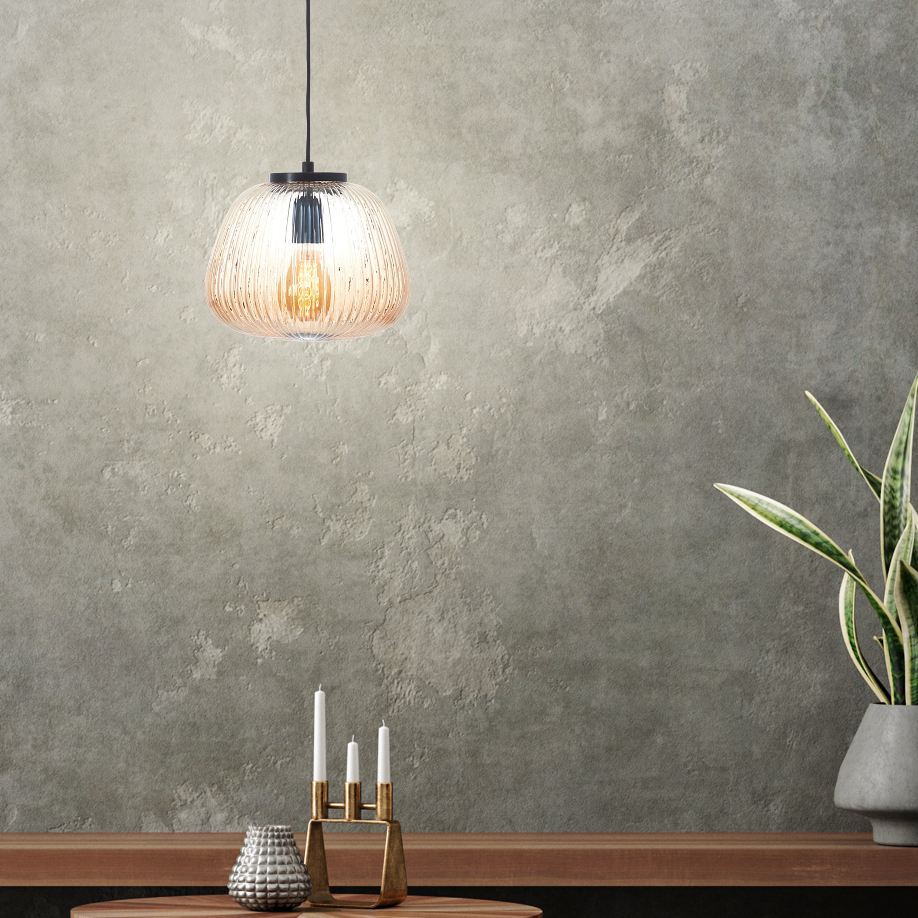- Gemaakt van metaal met een lampenkap van geribbeld glas