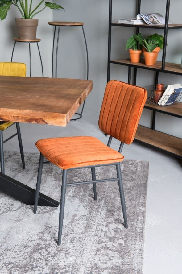 Eetkamerstoel Harvey is een prachtige, ruimtelijk ogende stoel van het merk Brix. Deze stoel heeft een velvet bekleding. Dit is makkelijk te reinigen, slijtvast en goed bestendig tegen bijvoorbeeld nagels van huisdieren. Met de koper kleur kunt u uw interieur zeker een boost geven.