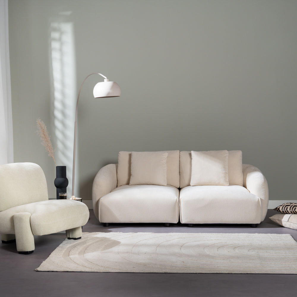 Dompel jezelf onder in de perfecte combinatie van comfort en stijl met de Scandinavische 3-zits Isa bank in een betoverende off-white kleur, met zachte ronde vormen. Deze bank is niet zomaar een zitplek, het is een statement stuk dat jouw woonruimte transformeert tot een oase van gezelligheid en design.