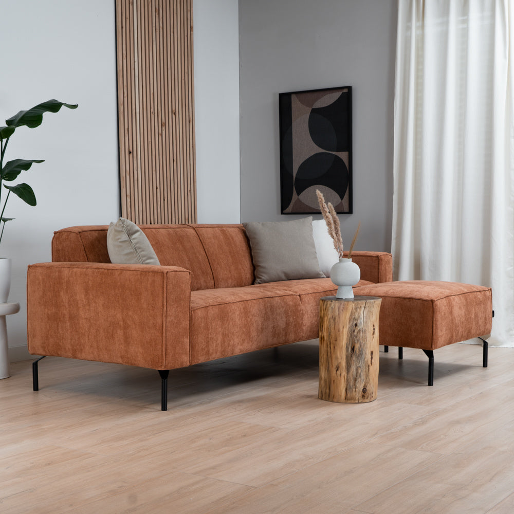 De pootjes zijn gemaakt uit gepoedercoat metaal en geven de bank een luchtige uitstraling.