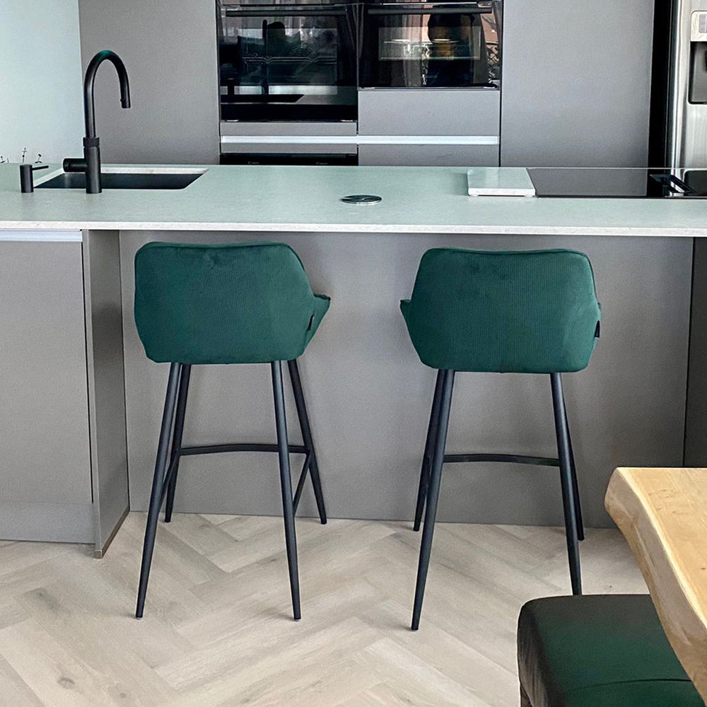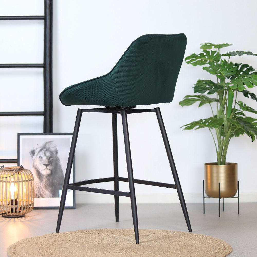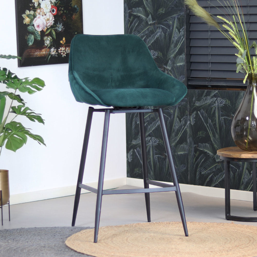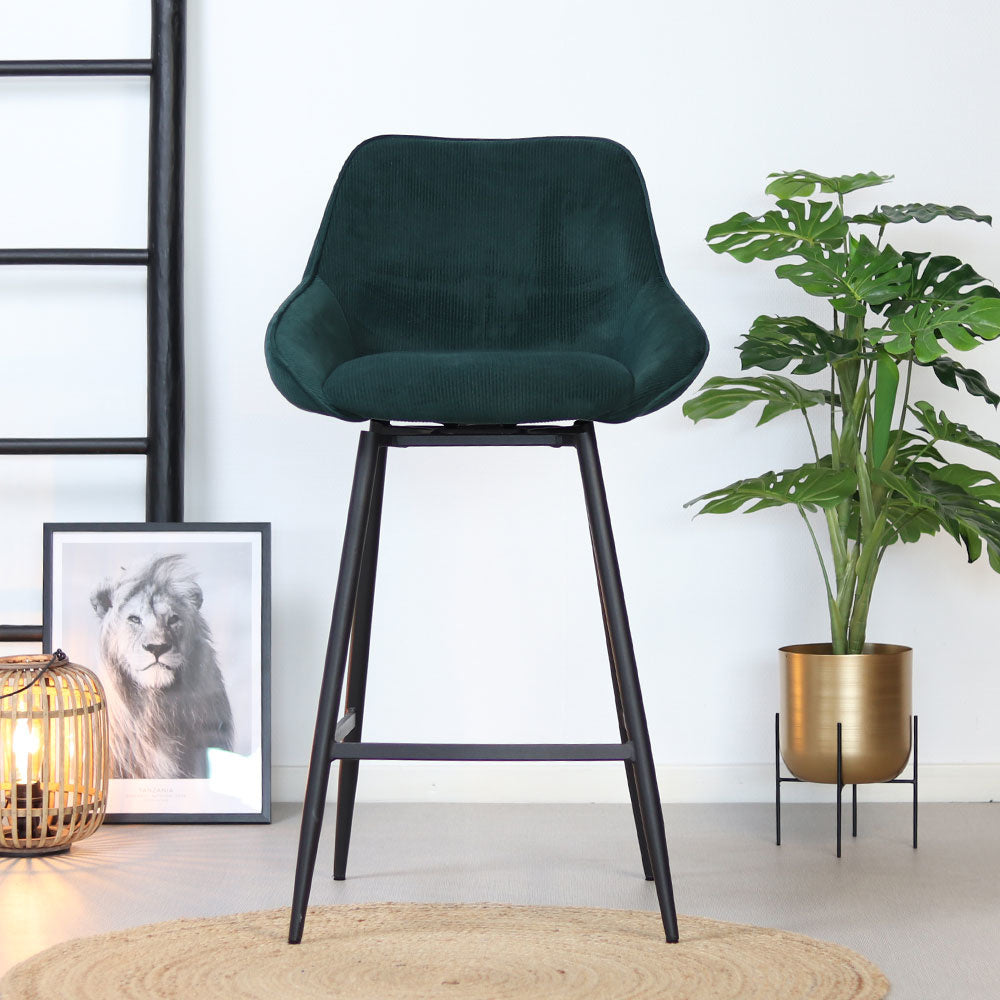De draaibare barkruk Luna is de perfecte combinatie van luxe en stoer. De barkruk is namelijk gemaakt van een mooie ribstof met een zwart gepoedercoat metalen onderstel. Hierdoor is de barstoel makkelijk te plaatsen in een industrieel interieur, maar ook een modern of landelijk interieur. Luna is voorzien van een rugleuning waardoor de barstoel comfortabel zit, daarnaast is de zitting 180° draaibaar! Bovendien draait de zitting altijd terug naar de rechte zit, waardoor de barkruk altijd netjes bij je tafel staat. Mooi en praktisch!