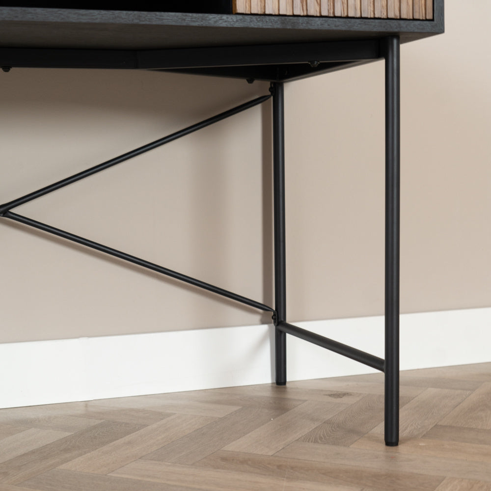De fronten van de lades hebben een gestreept design, waardoor het houten bureau een elegante uitstraling heeft. Het geribbelde design heeft dezelfde look als die van een houten wandpaneel en het meubel is daardoor ook perfect te matchen met deze interieurtrend. Ook zijn de lades voorzien van een softclose systeem. Een soft close lade kan heel makkelijk geruisloos gesloten worden en zal bij te hard dichtschuiven niet snel beschadiging aan het meubel veroorzaken.