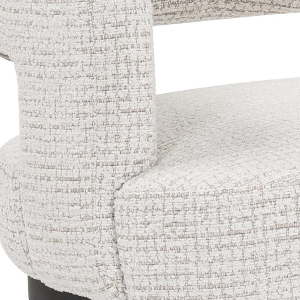 Draaifauteuil Gino combineert een compact formaat met hoog zitcomfort. De gemêleerde beige stoffering en de zachte, ronde belijning geven de fauteuil een eigentijdse en sfeervolle uitstraling. Het zwarte onderstel met draaifunctie voegt niet alleen functionaliteit toe, maar ook een modern accent.