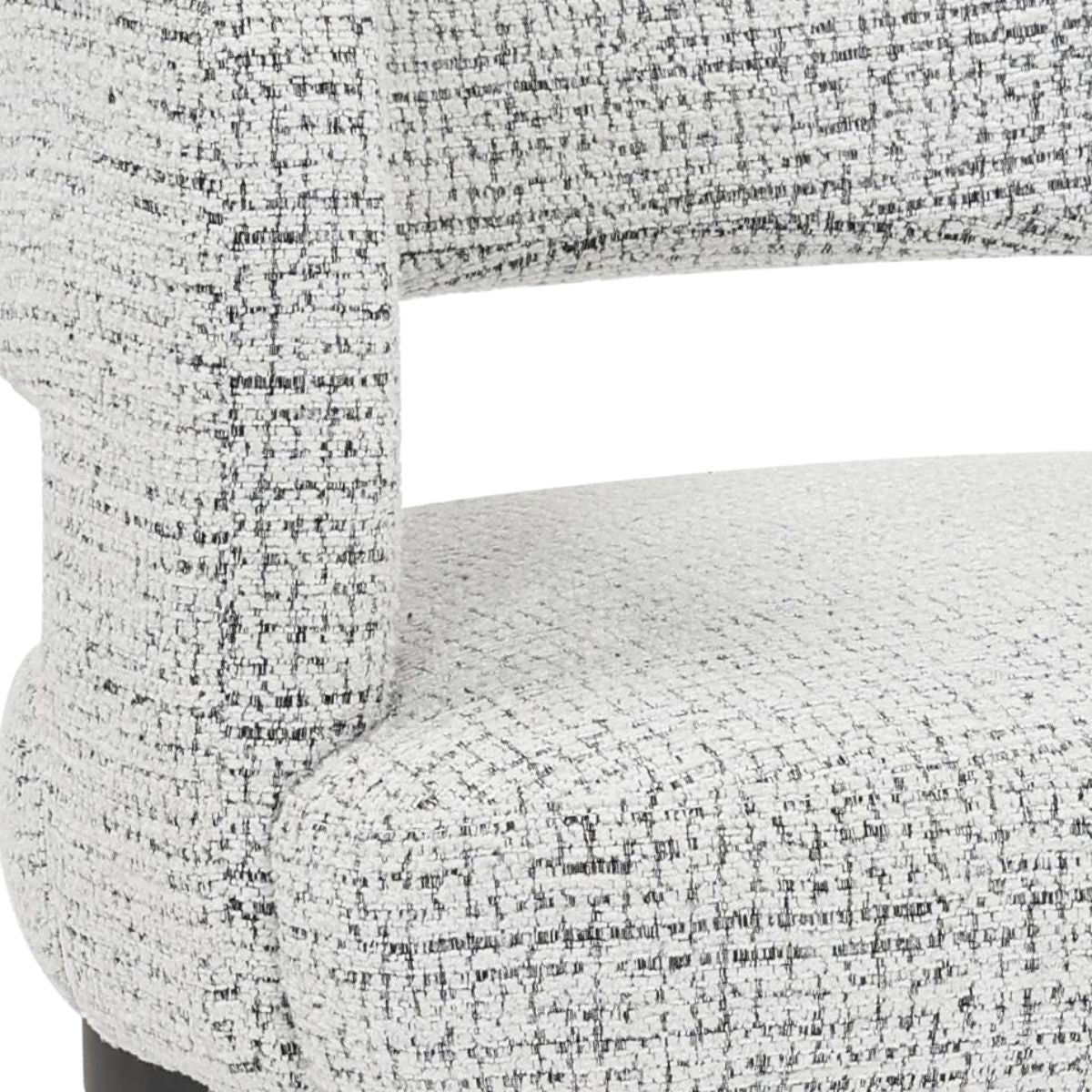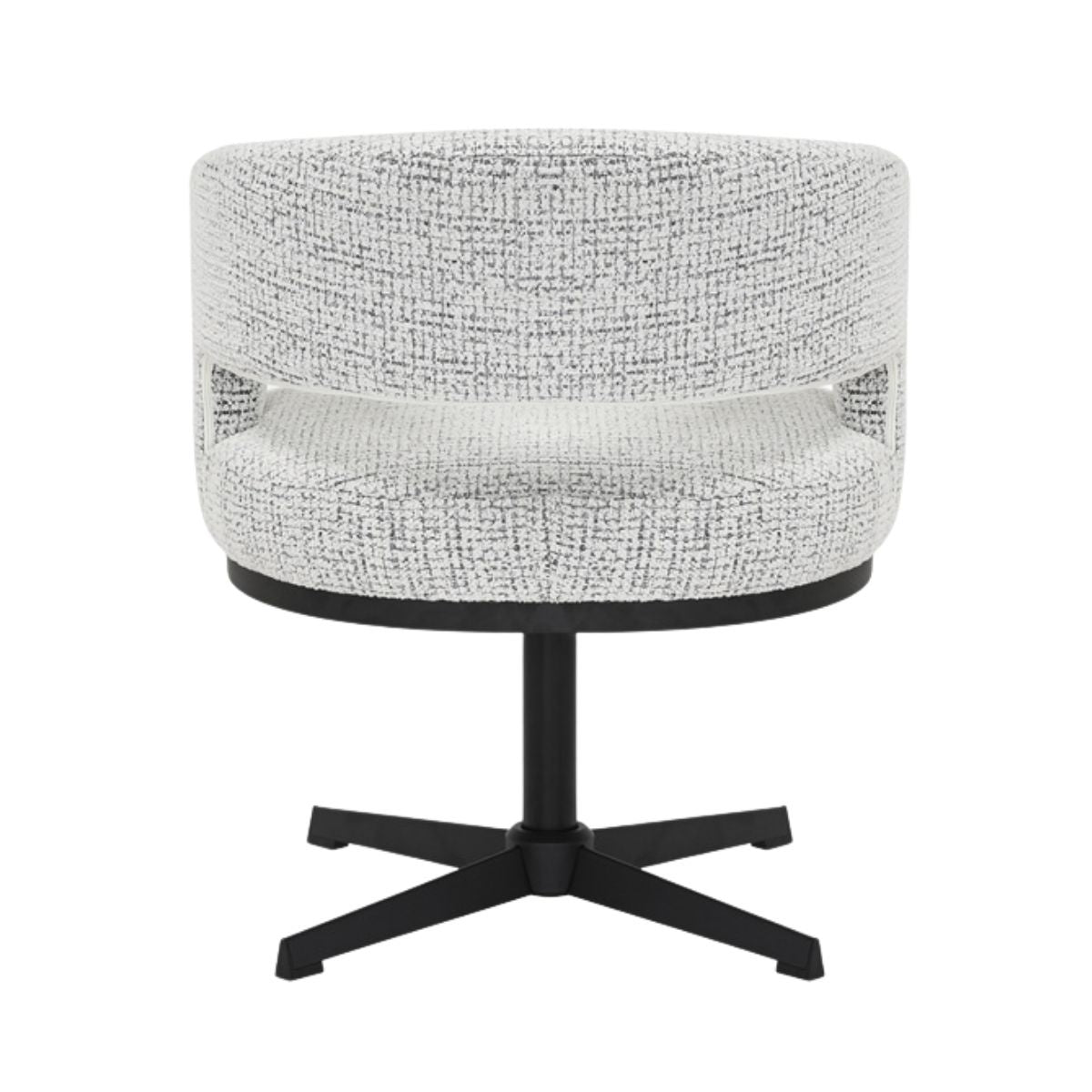Draaifauteuil Gino combineert een compact formaat met hoog zitcomfort. De gemêleerde beige stoffering en de zachte, ronde belijning geven de fauteuil een eigentijdse en sfeervolle uitstraling. Het zwarte onderstel met draaifunctie voegt niet alleen functionaliteit toe, maar ook een modern accent.