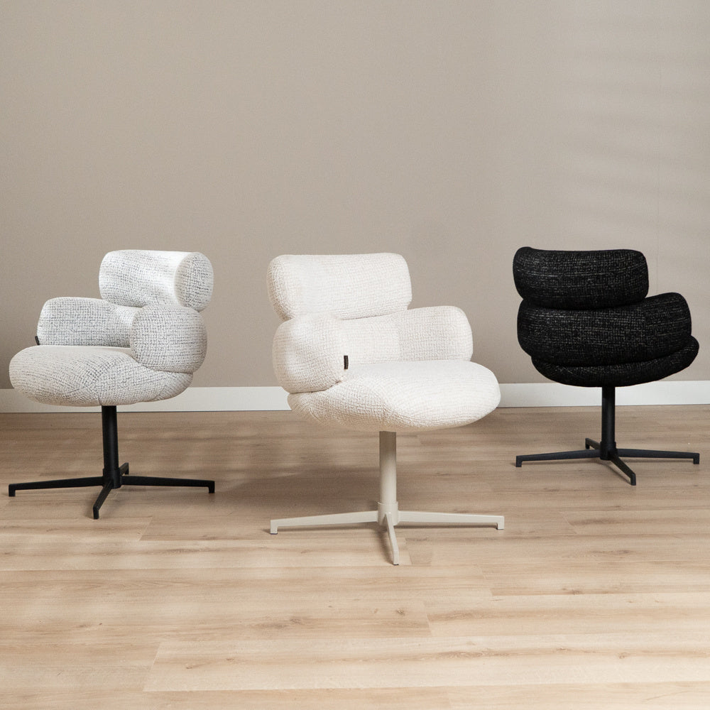 Bronx71 Eetkamerstoel Coco gemêleerde stof off white|zwart