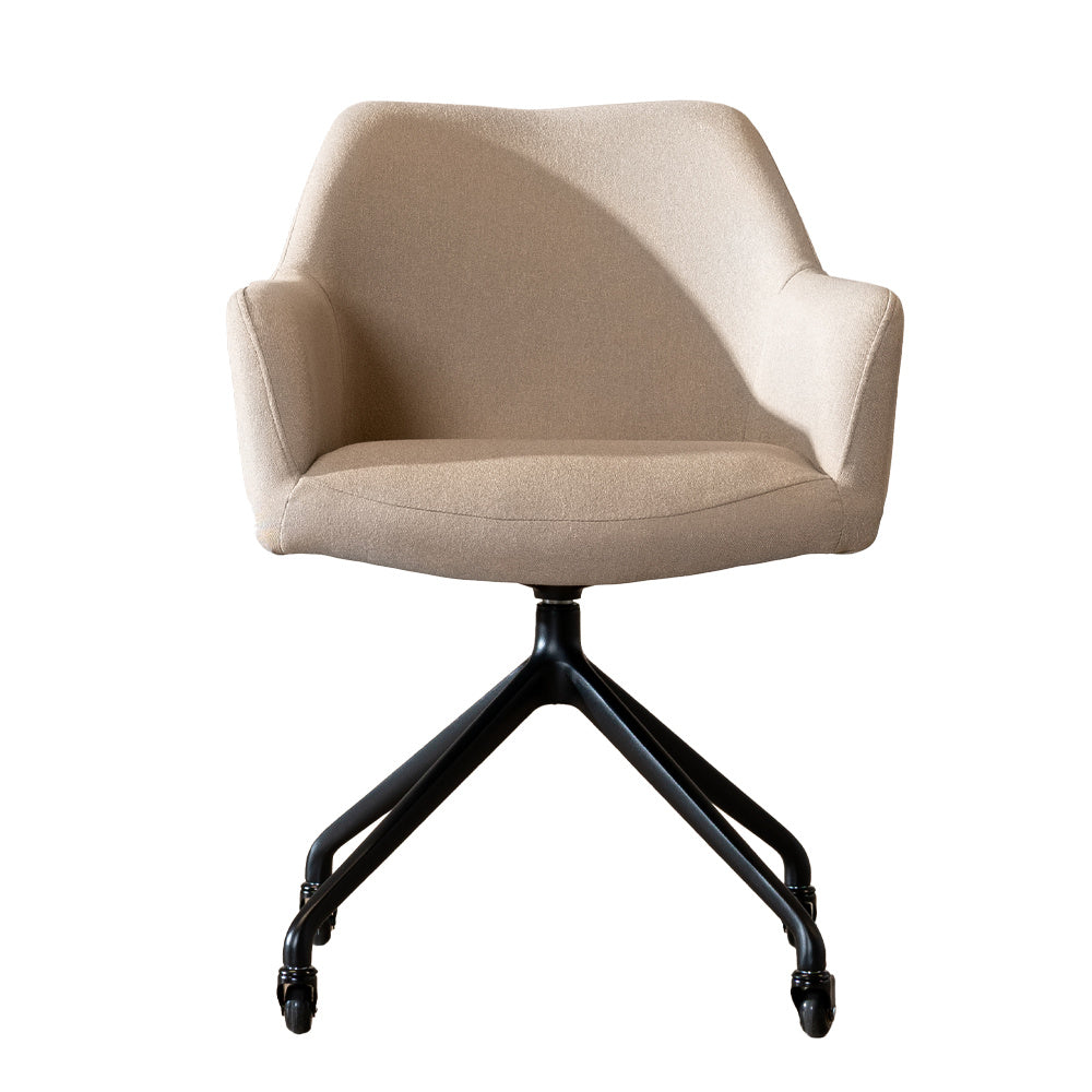 - De stoel heeft wieltjes, waardoor deze makkelijk te verplaatsen is