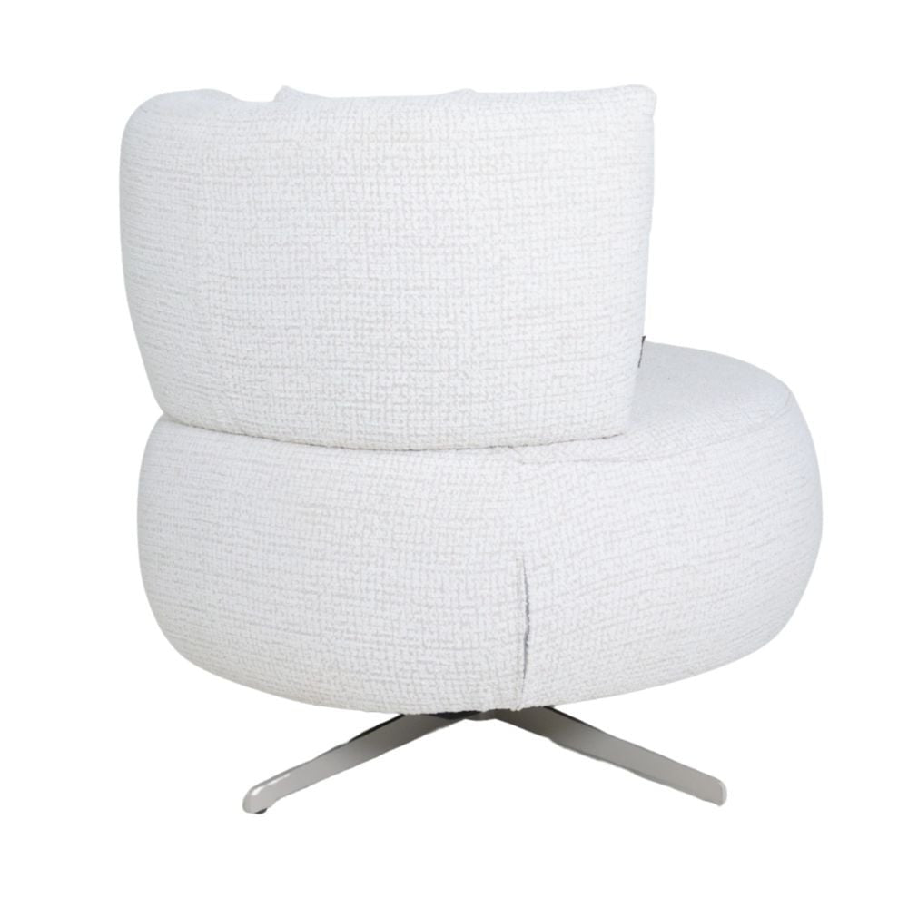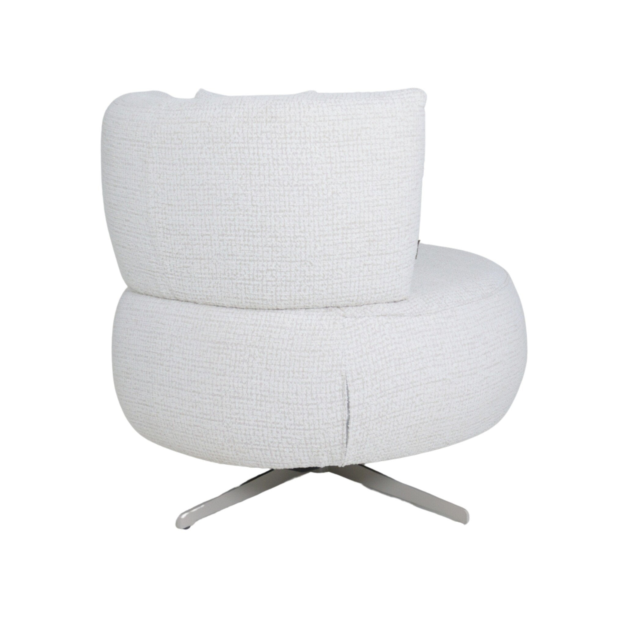 De brede zit biedt extra ruimte en comfort, terwijl het meegeleverde losse rug kussen zorgt voor fijne ondersteuning en een ontspannen zitervaring. De 360 graden draaibare fauteuil biedt niet alleen een luxe zit plek maar voegt ook een vleugje klasse toe aan je woonruimte.