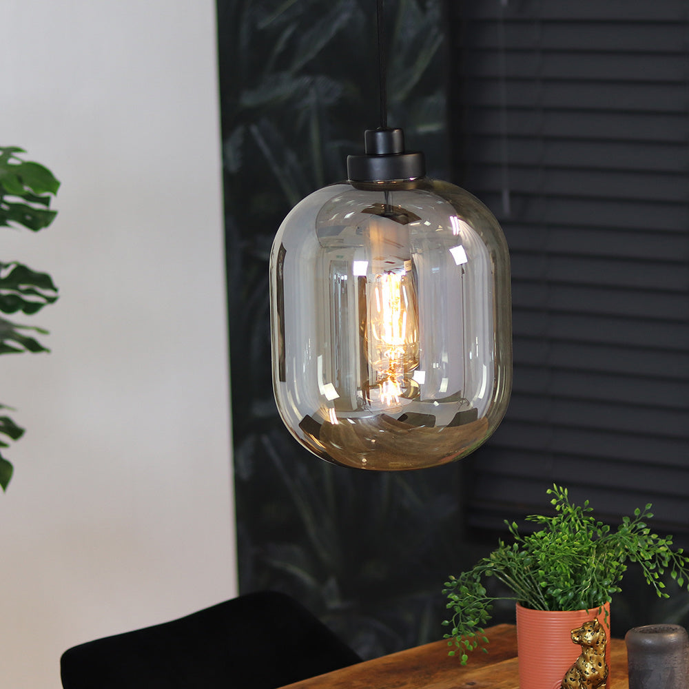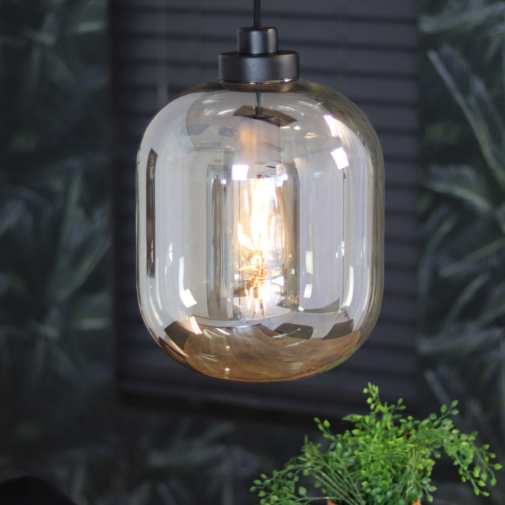 Hanglamp Amber bestaat uit één lichtbron met een 'amberkleurig/brons glass' effect met een hoogte van 30 centimeter. Het licht krijgt een mooi en warm effect door de donkere schaduw kleur. Combineer deze lamp daarom met een mooie lichtbron zoals een druppel of bol. Hanglamp Amber heeft ruimte voor 1 lichtbronnen waarmee je genoeg licht creëert en jouw interieur sfeervol maakt!