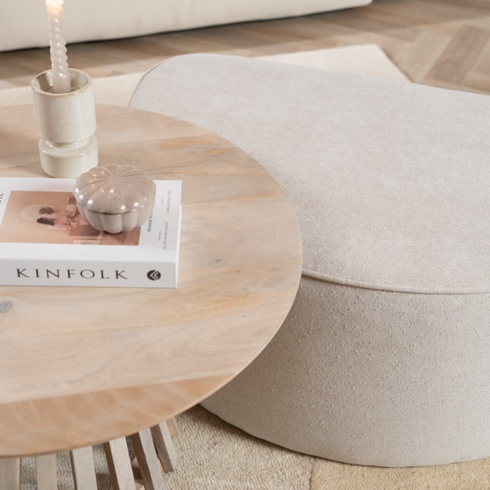 Het onderhoud van de Hocker Lune is eenvoudig: regelmatig stofzuigen met een zachte borstel houdt de stof mooi. Vlekken kunnen verwijderd worden met een vochtige doek en mild reinigingsmiddel of met de Textiel Care Kit. Zo behoudt de poef zijn prachtige uitstraling en kun je er nog jarenlang van genieten.