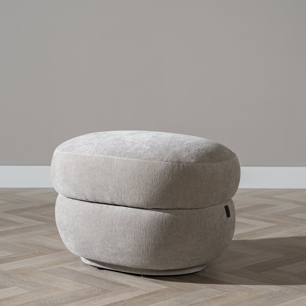 Hocker Mia chenille is een veelzijdige ovalen poef die je onder andere aan kunt schuiven bij jouw bank of kunt gebruiken als salontafel.
