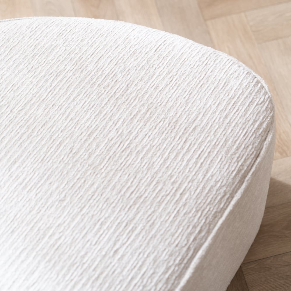 De Hocker Mio is gemaakt van hoogwaardige ribstof die niet alleen zacht en comfortabel is, maar ook stevig en duurzaam. De lichte kleur geeft een frisse en tijdloze uitstraling aan de poef en past perfect bij diverse kleurenpaletten. Dankzij het compacte formaat past deze poef in elke ruimte en is hij veelzijdig in gebruik. Gebruik hem als extra zitplek, als voetenbankje of als decoratief element. Door er een dienblad op te plaatsen kan de hocker ook als salontafel dienen. Middels de rechte zijde kun je deze gemakkelijk aan een bank plaatsen. De ronde kant maakt de hocker ook toepasbaar in een hoek van de ruimte.
