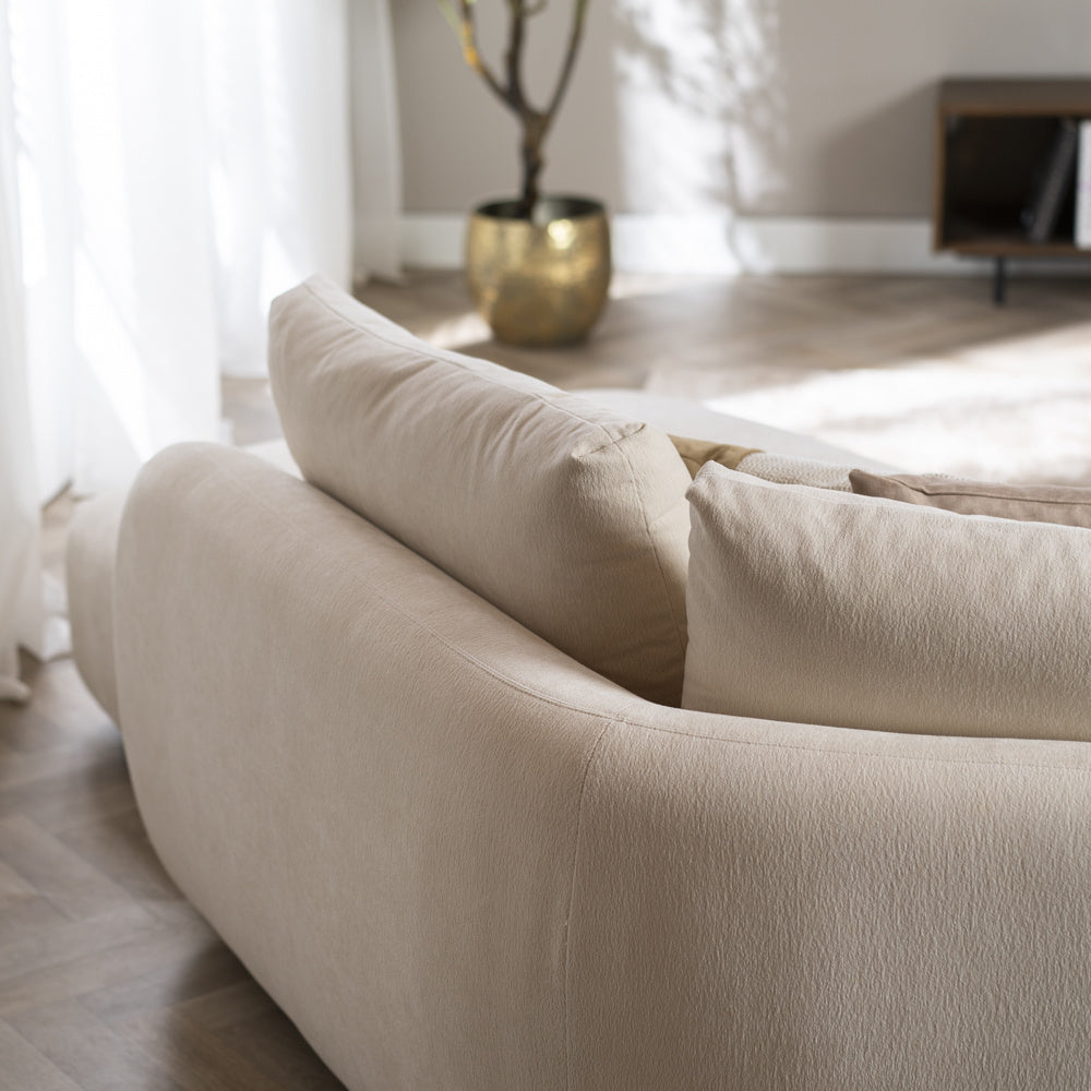 Dompel jezelf onder in de perfecte combinatie van comfort en stijl met de Scandinavische Isa hoekbank in een betoverende off-white kleur, met zachte ronde vormen. Deze bank is niet zomaar een zitplek, het is een statement